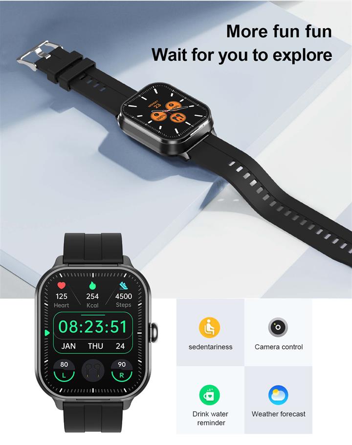 智能1.57英寸量血氧血壓心率通話手表Wat2023