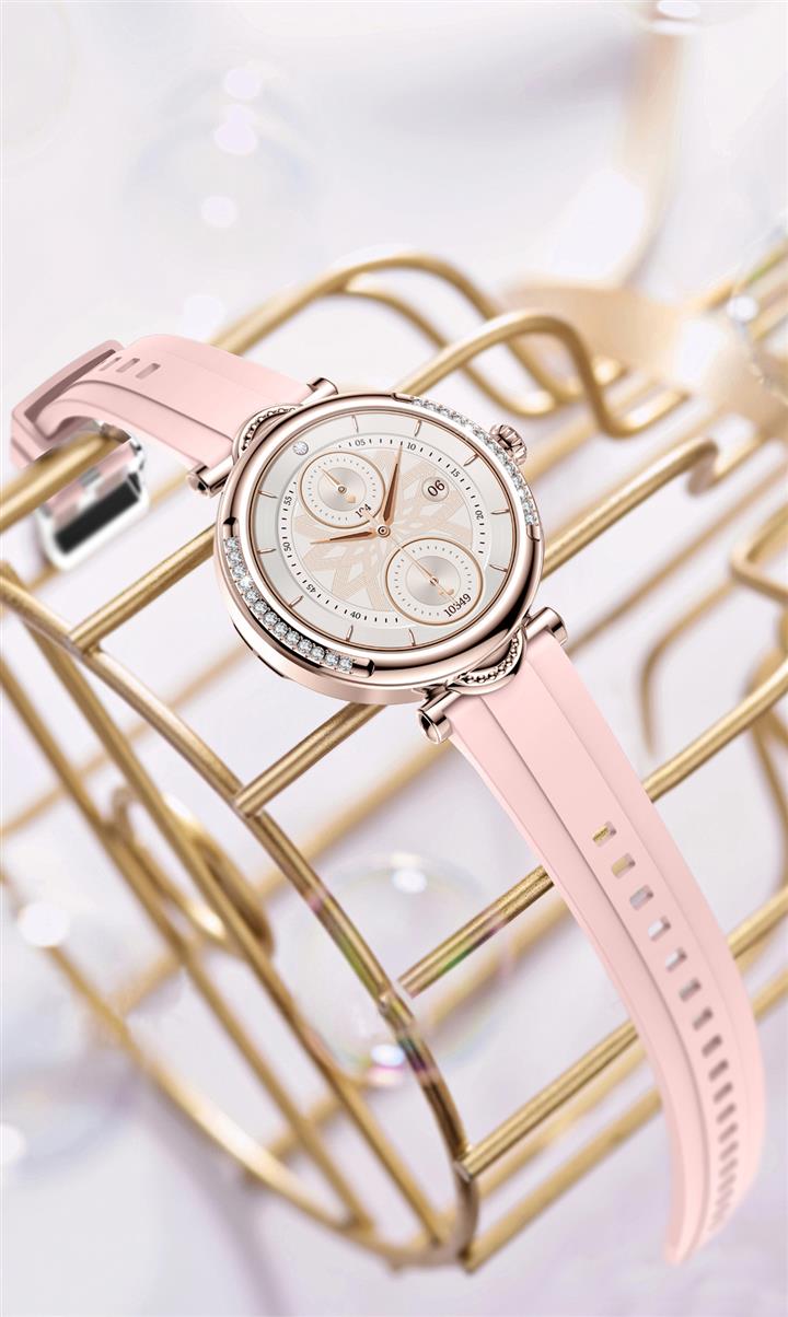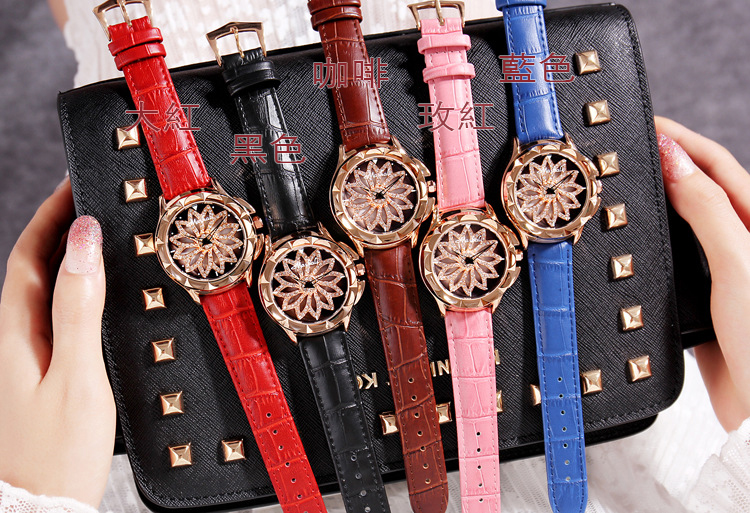 新款 女士時來運轉腕表玫瑰金 雕花殼 皮錶帶 時尚女手錶Wat50