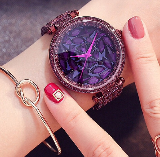 爆款 鑲鑽 耐用水晶滿鑽 時尚個性紫色鋼帶 女士手錶Wat59