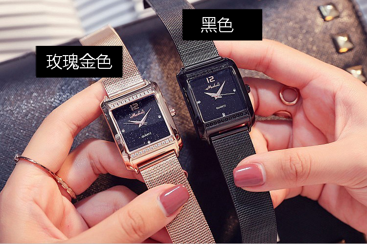 新款爆款 不銹鋼網帶星空方形優雅大氣 時尚個性女士手錶Wat61