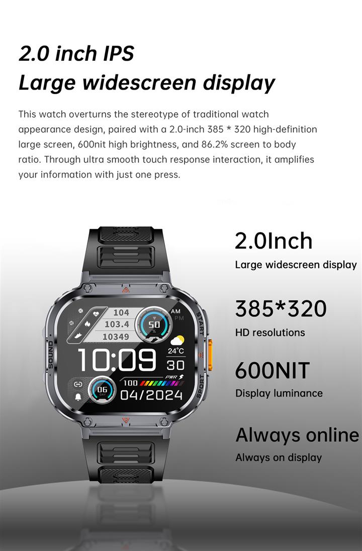 智能1.57英寸量血氧血壓心率通話手表Wat2023