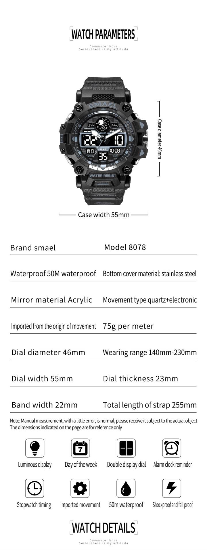 戶外荒野訓練防震軍旅男士錶 wat1863