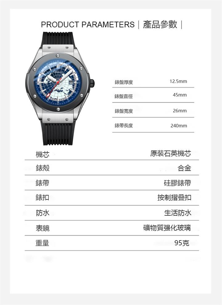 新款石英防水夜光地圖星空表Wat2046