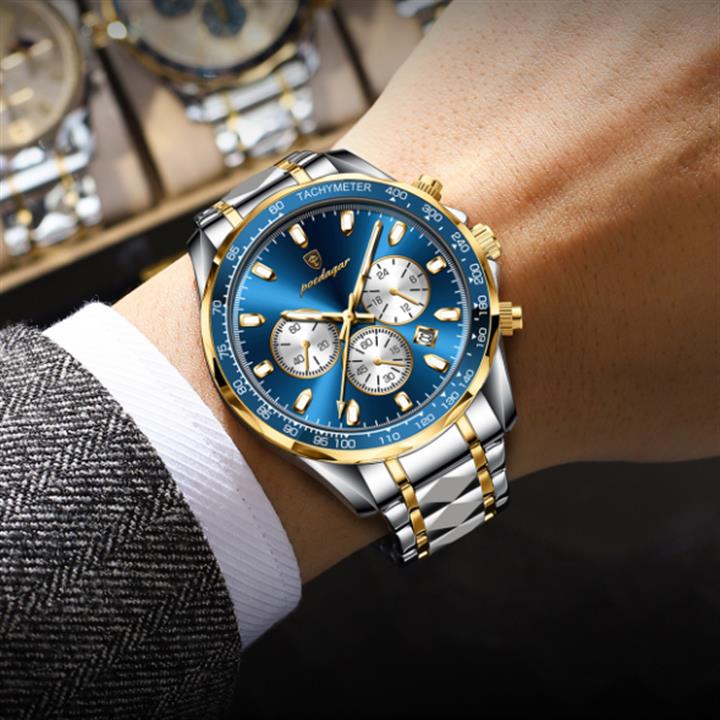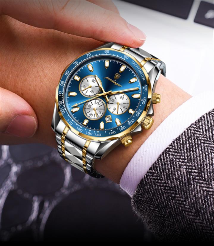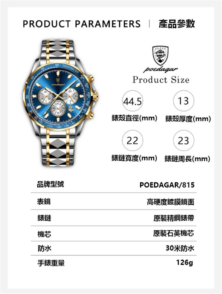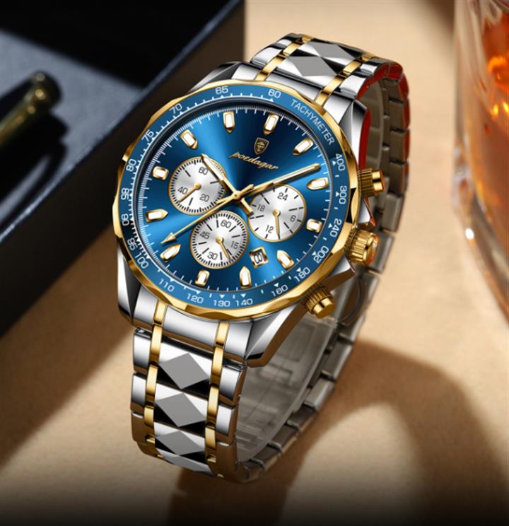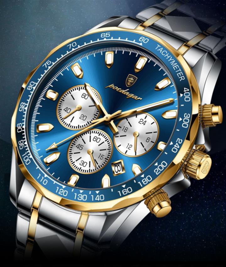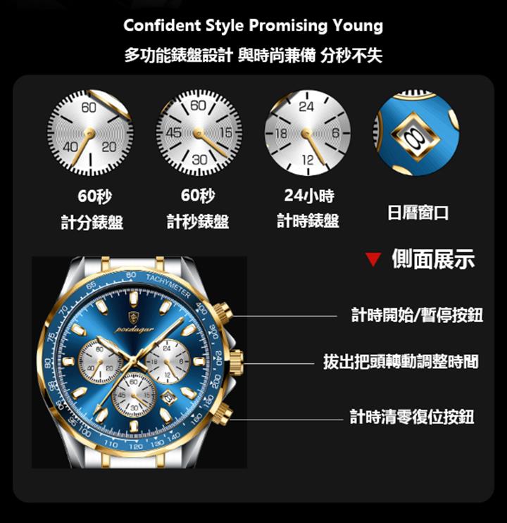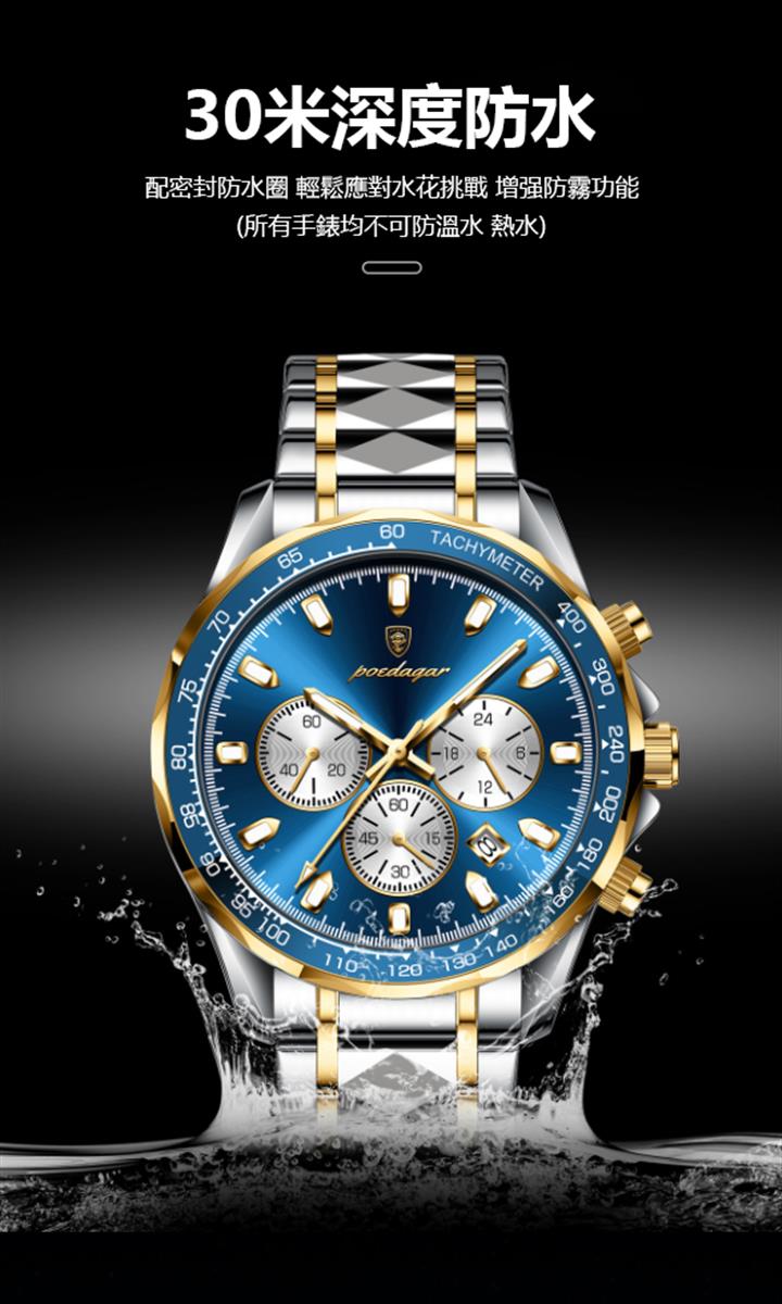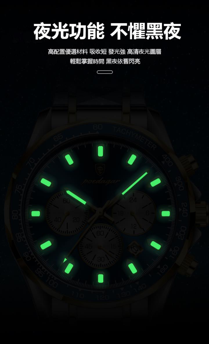 高檔三眼六針多功能月相鋼帶表Wat2042