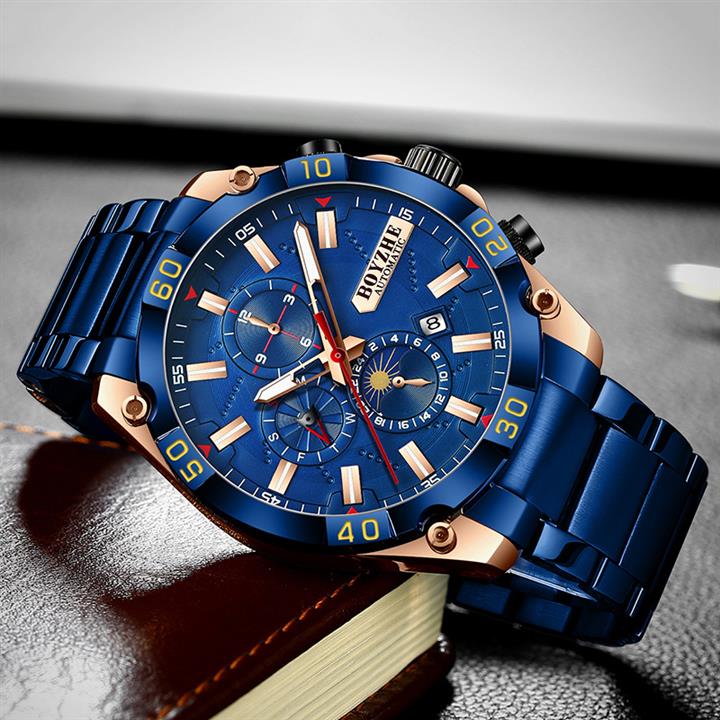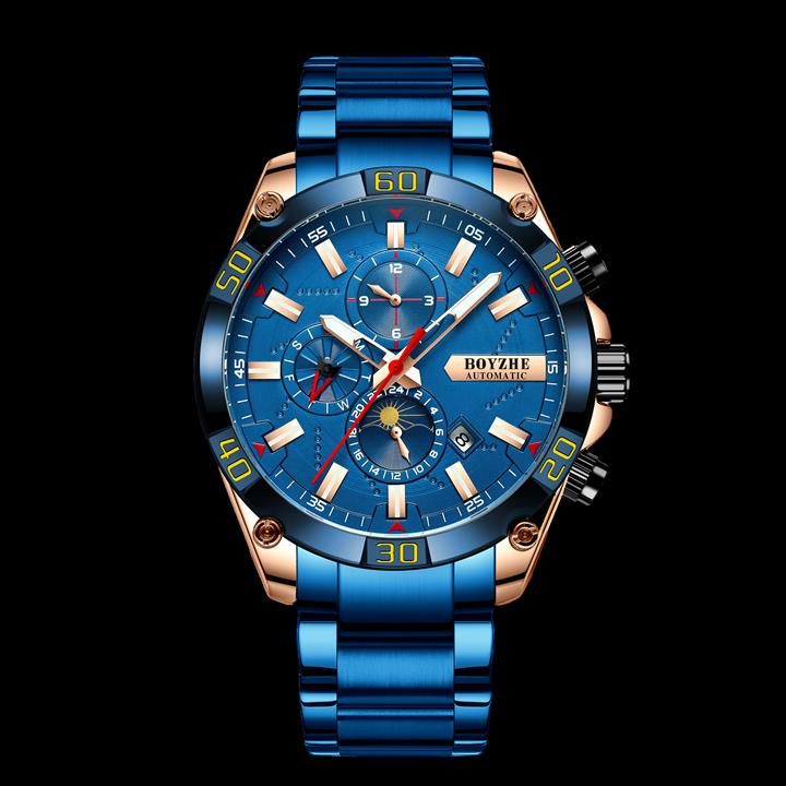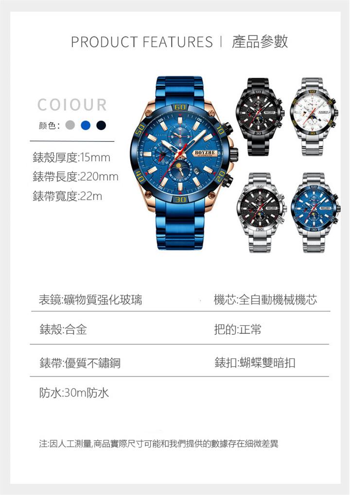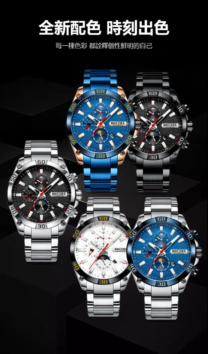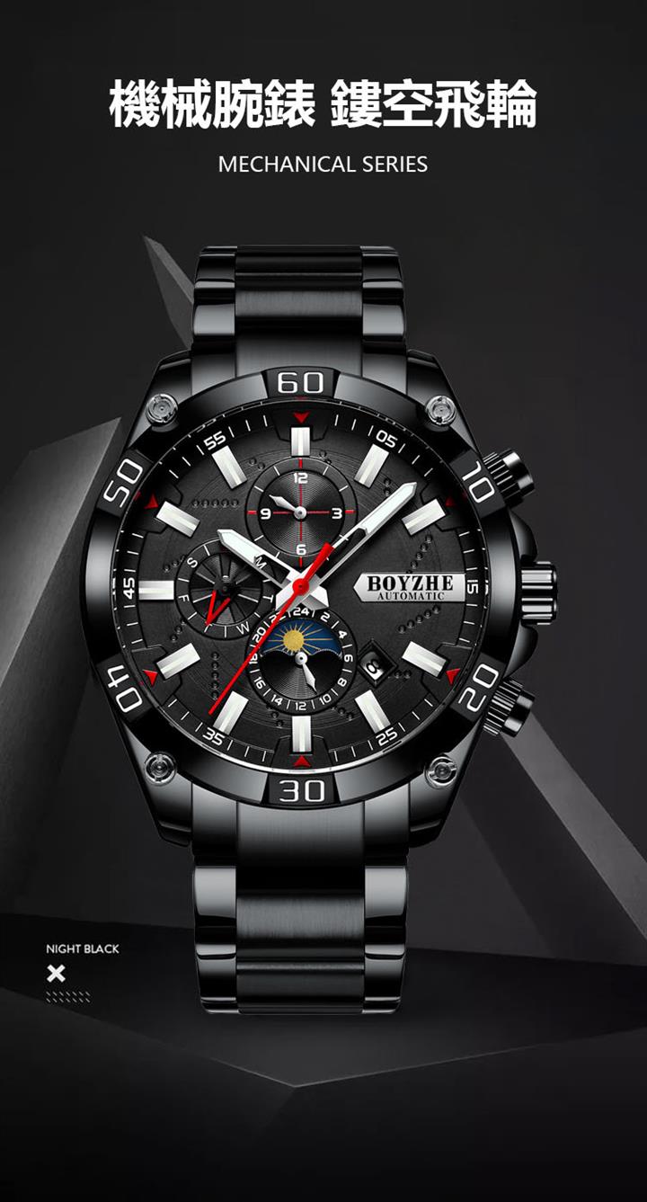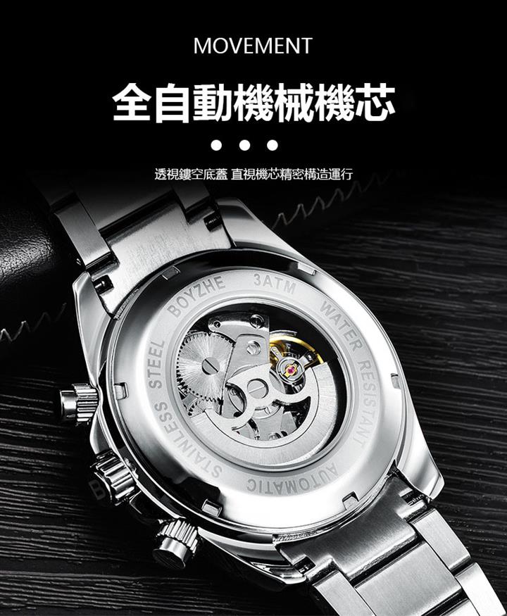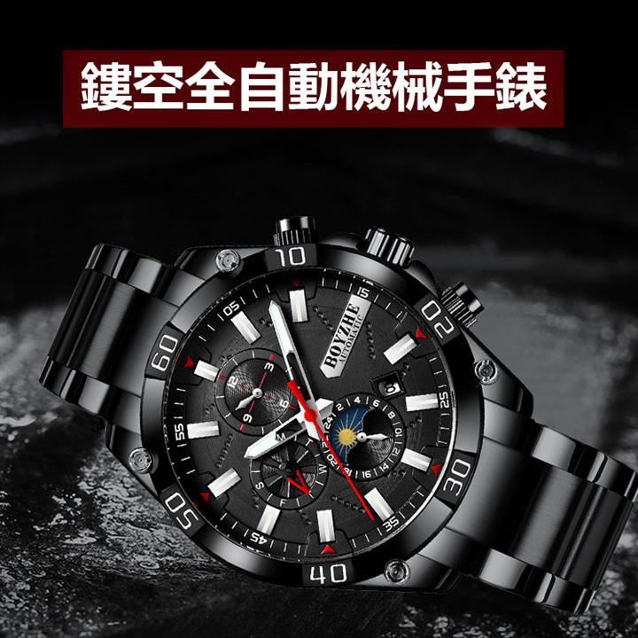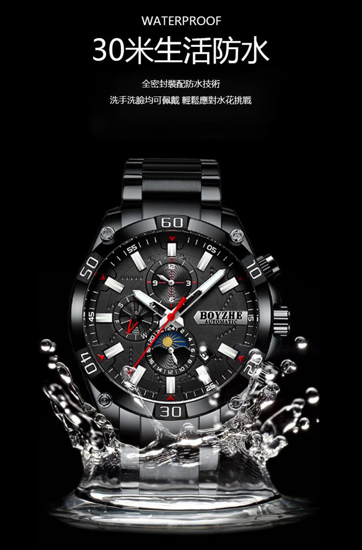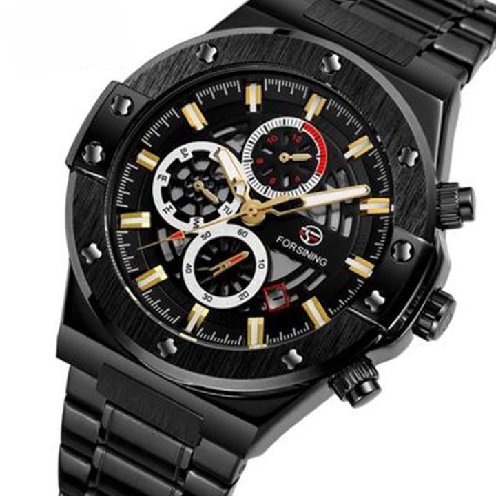 FORSINING新款夜光防水精鋼帶全自動男士多功能鏤空機械錶wat1146