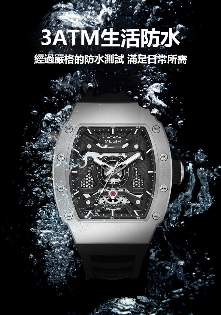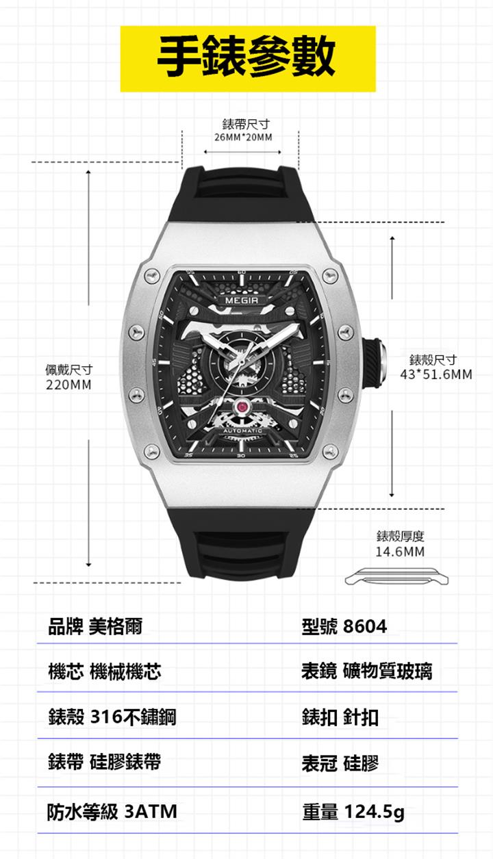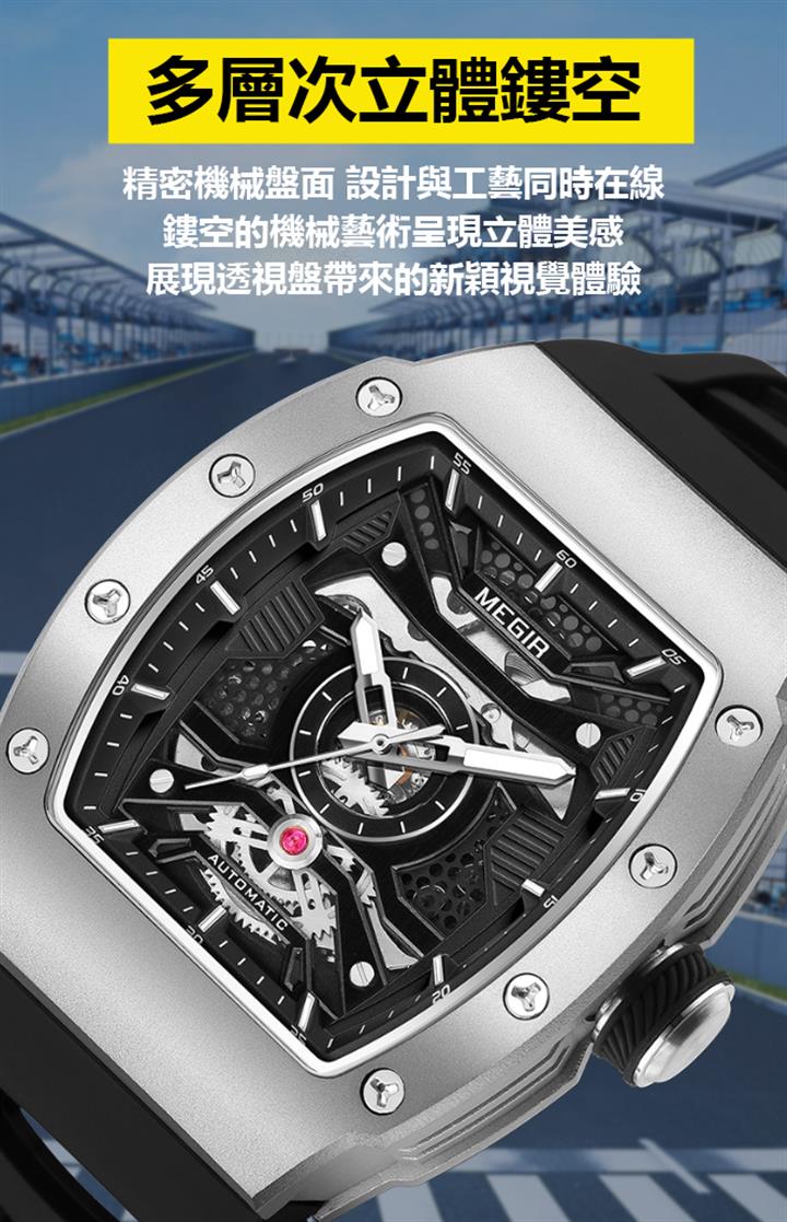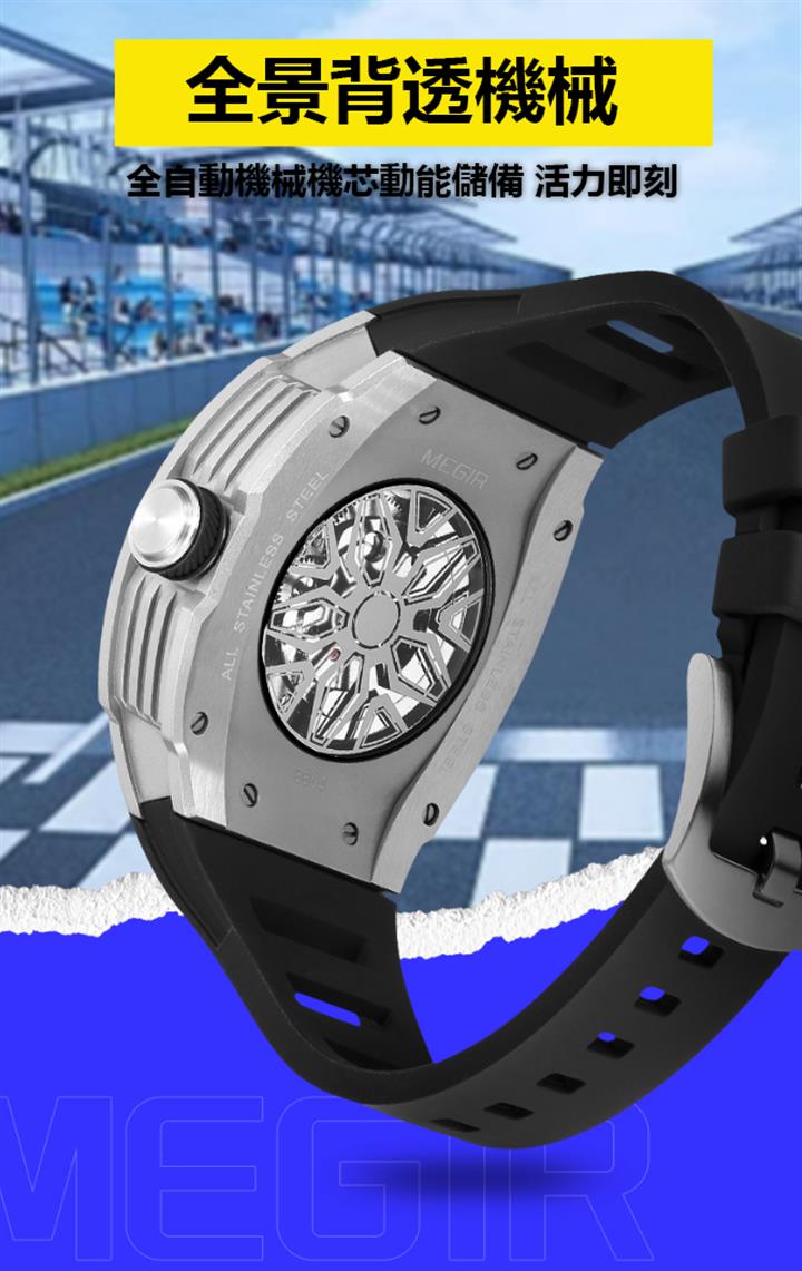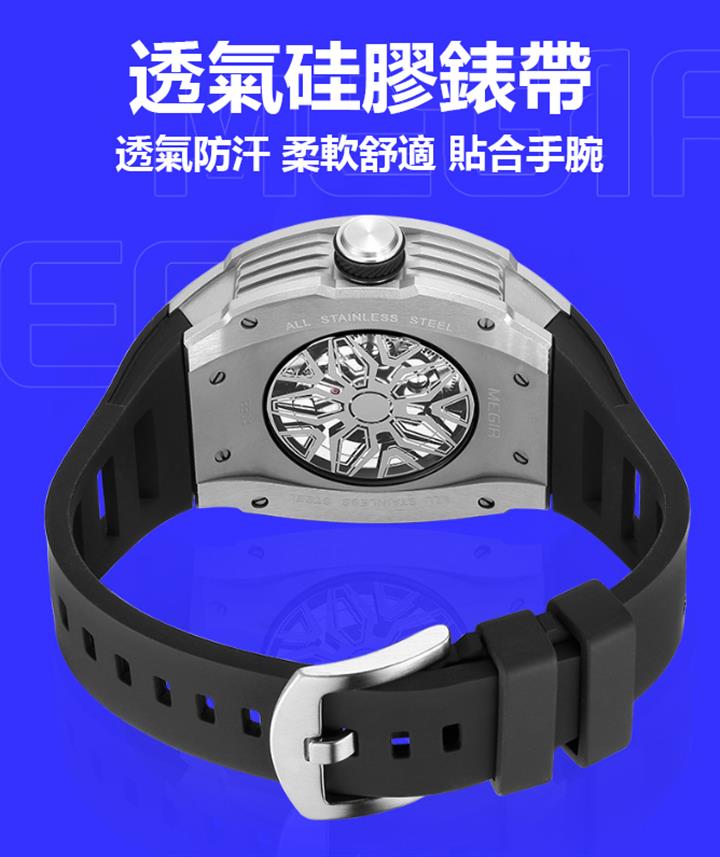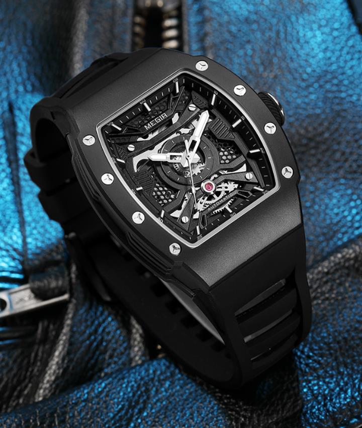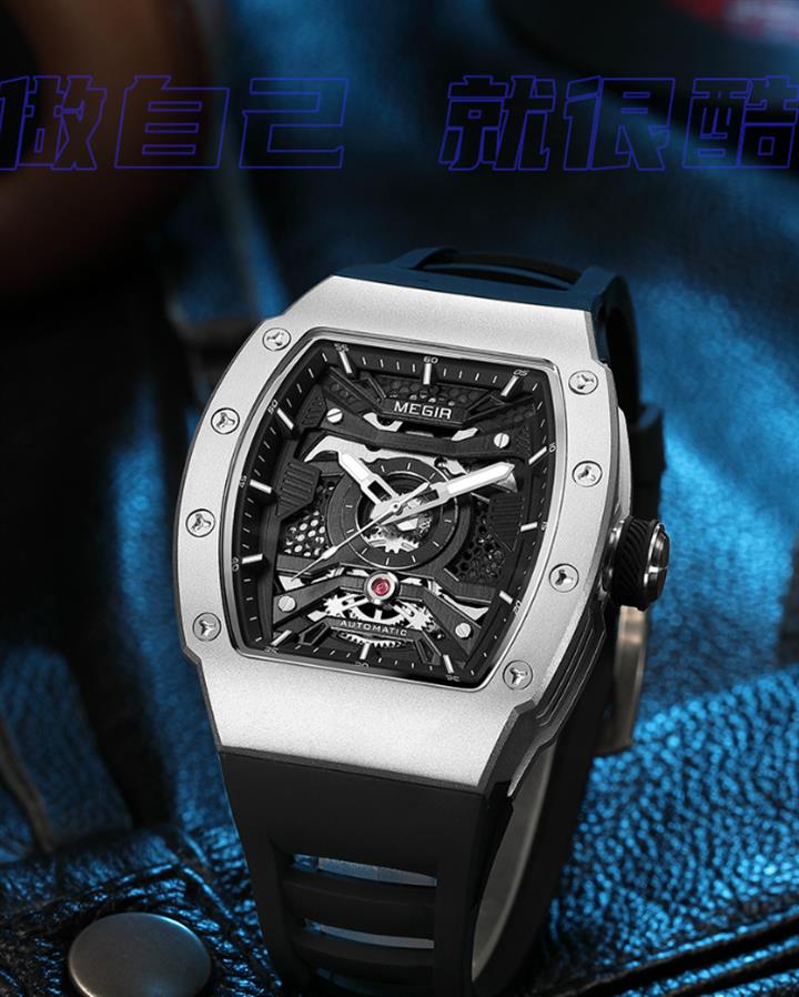 多色硅膠錶帶酒桶型機械運動錶 Wat1928