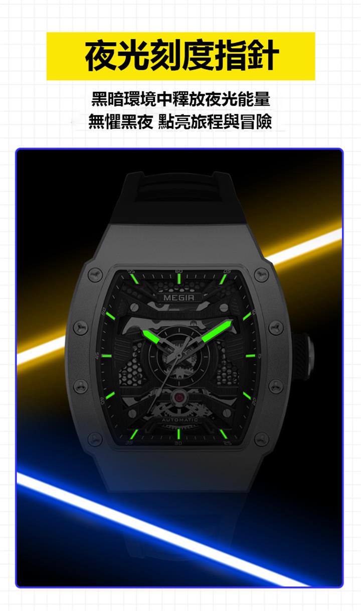 鏤空酒桶型夜光防水男士全自動機械表wat1946