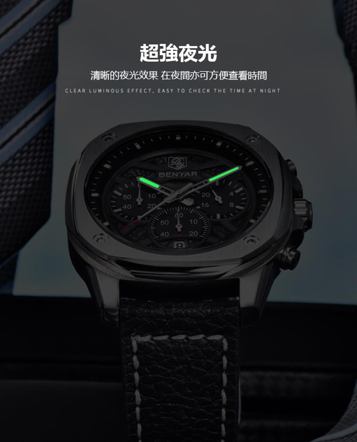 全自動鏤空實心鋼帶夜光防水表 Wat1876
