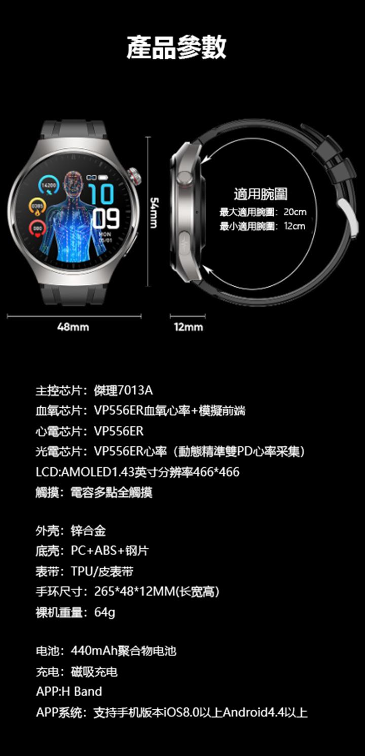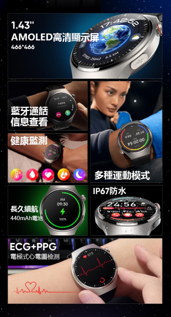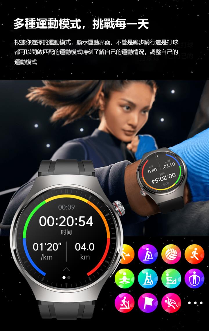 大屏運動藍牙計步測心率健康監測智能錶 Wat1858