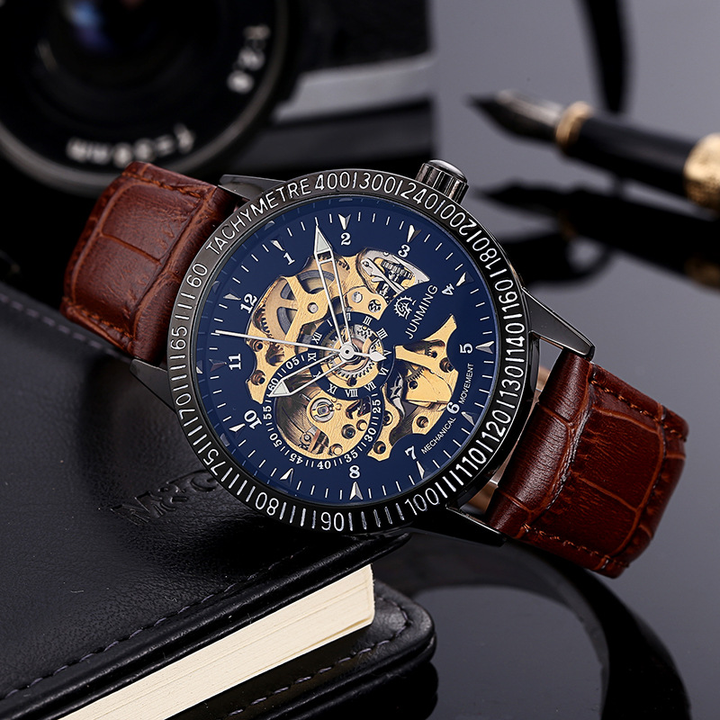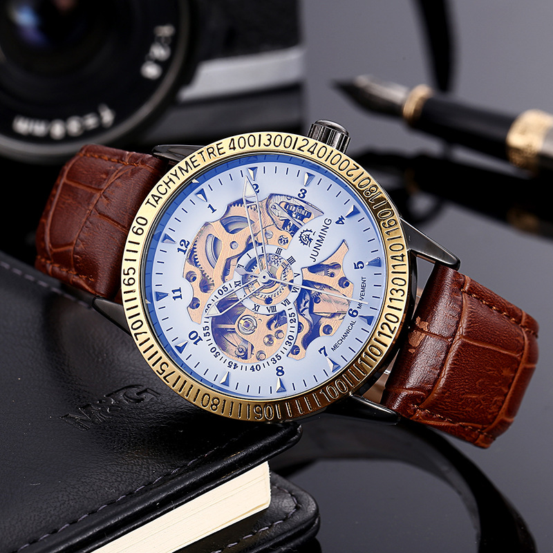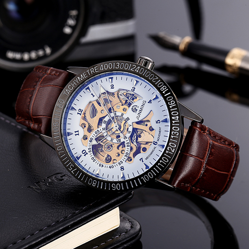 TEVISE全自動機械表鏤空精鋼商務男錶Wat04