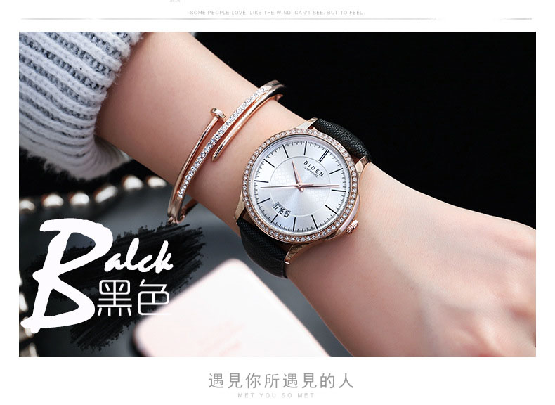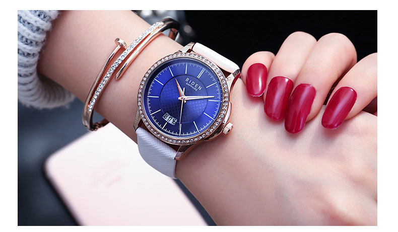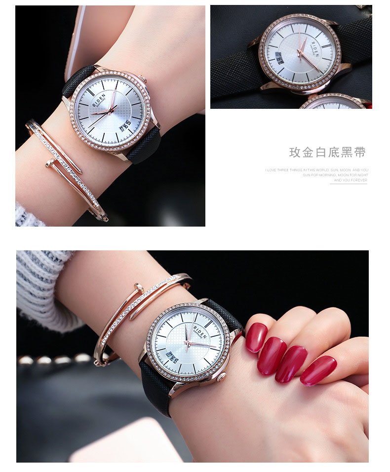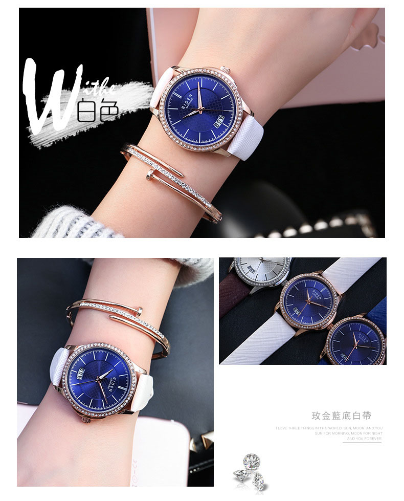 優雅時尚貝殼面真皮錶帶實心鋼錶Wat43