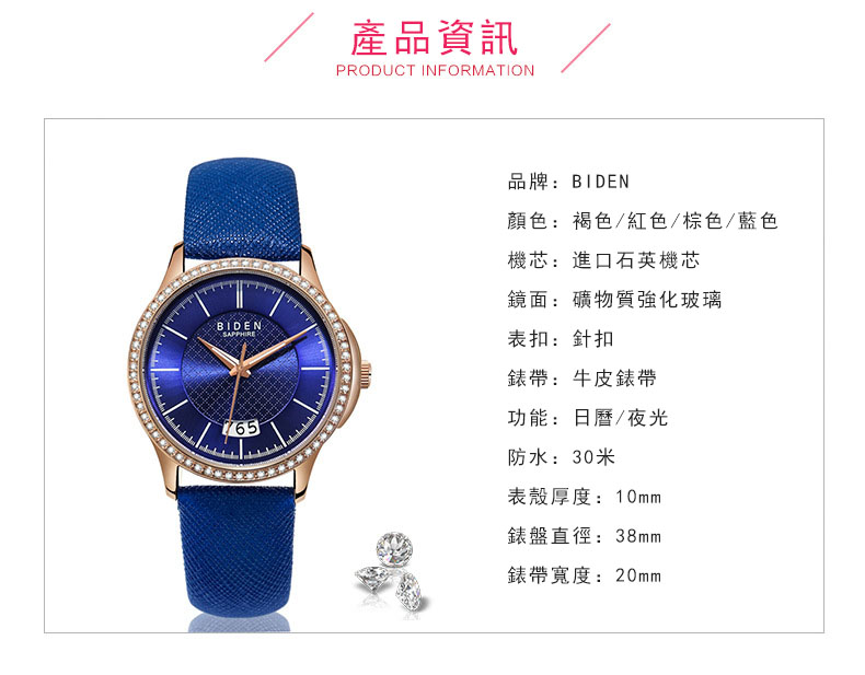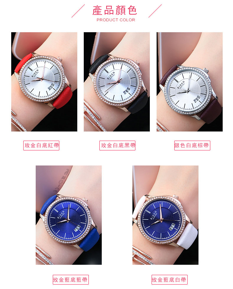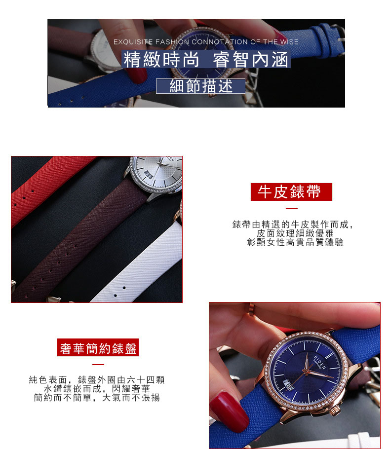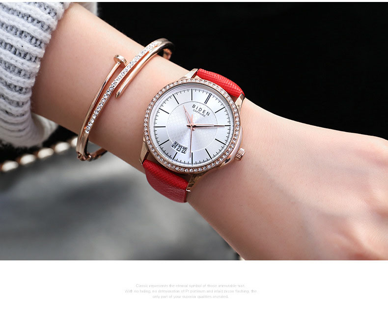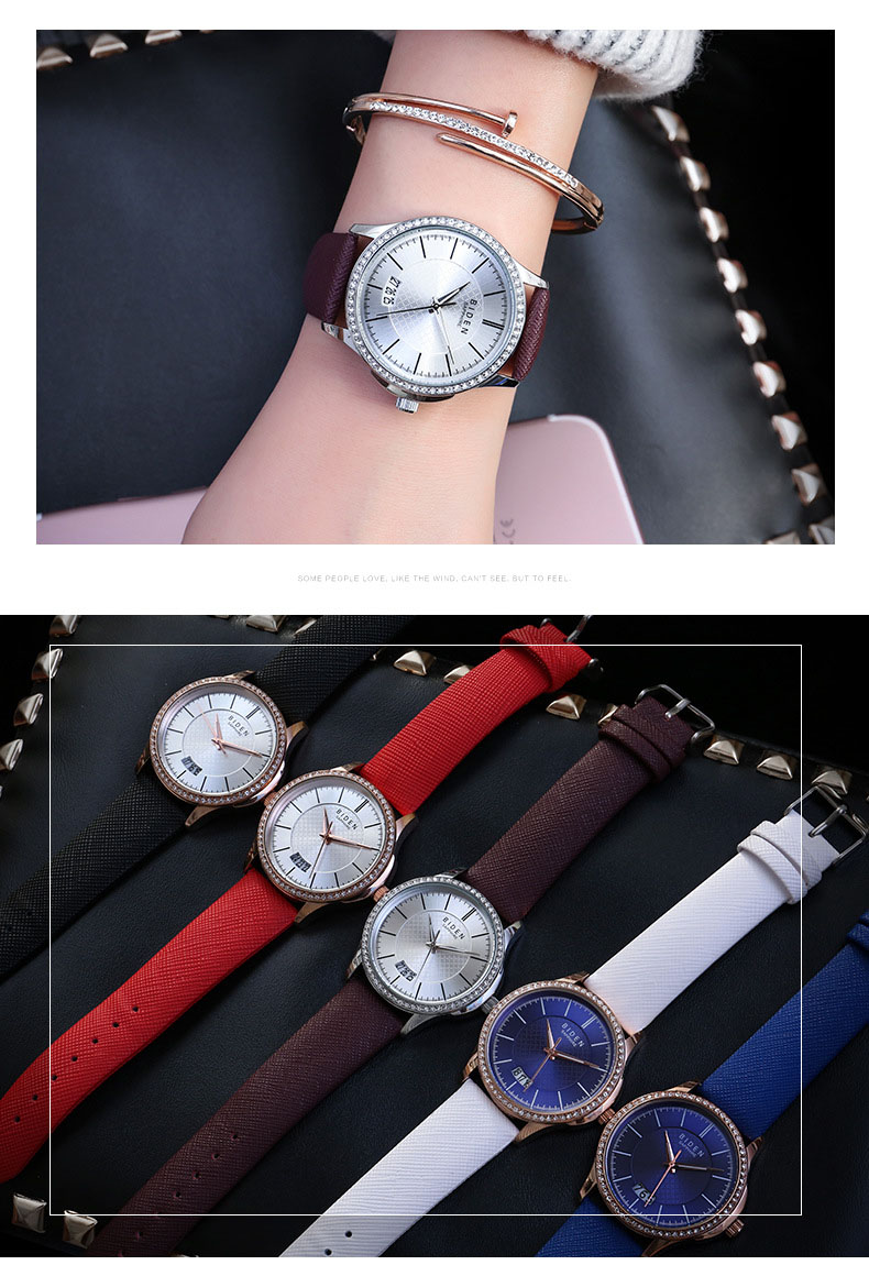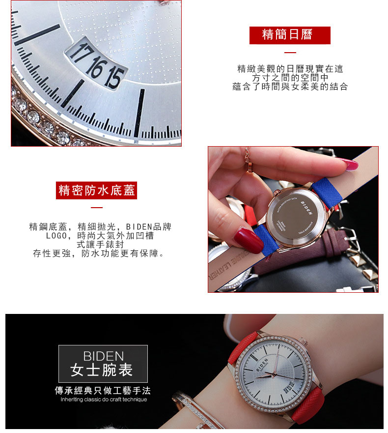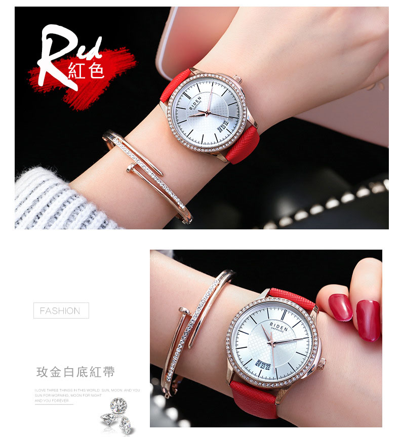 耐用大牌奢華時尚帥氣大錶盤水鑽表紅色紫色皮錶帶女士手錶Wat49