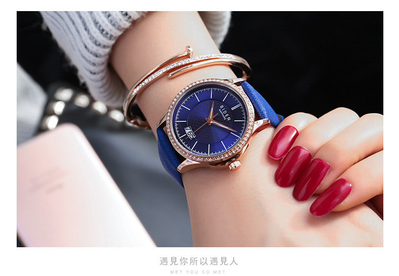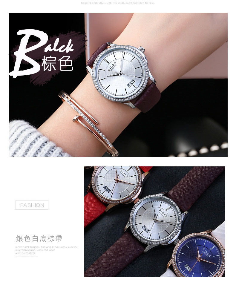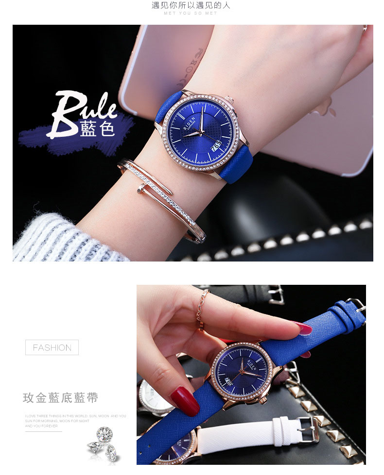 爆款 時來運轉 潮流個性 時尚 紫色皮錶帶 鑲鑽女士手錶Wat55