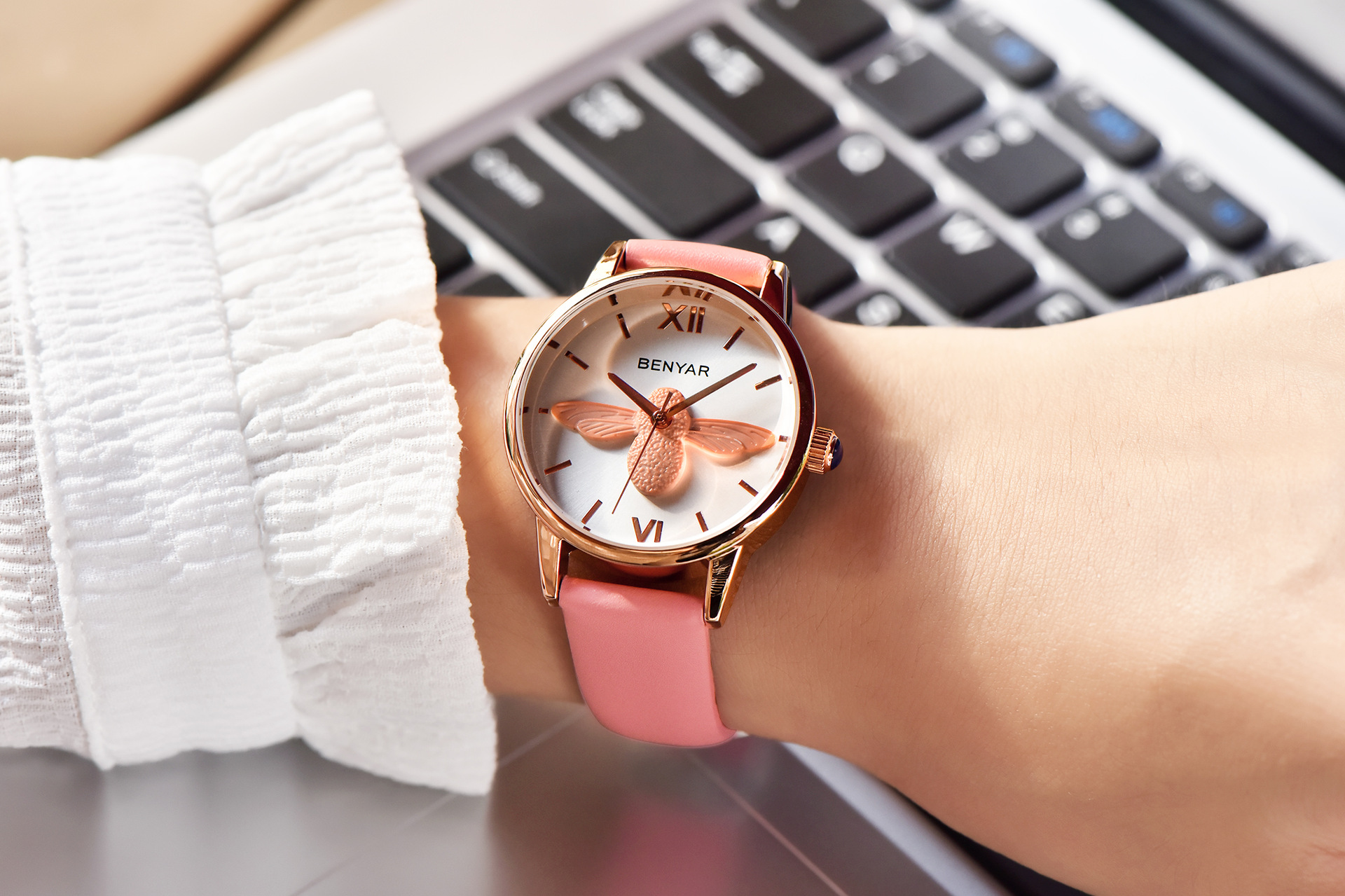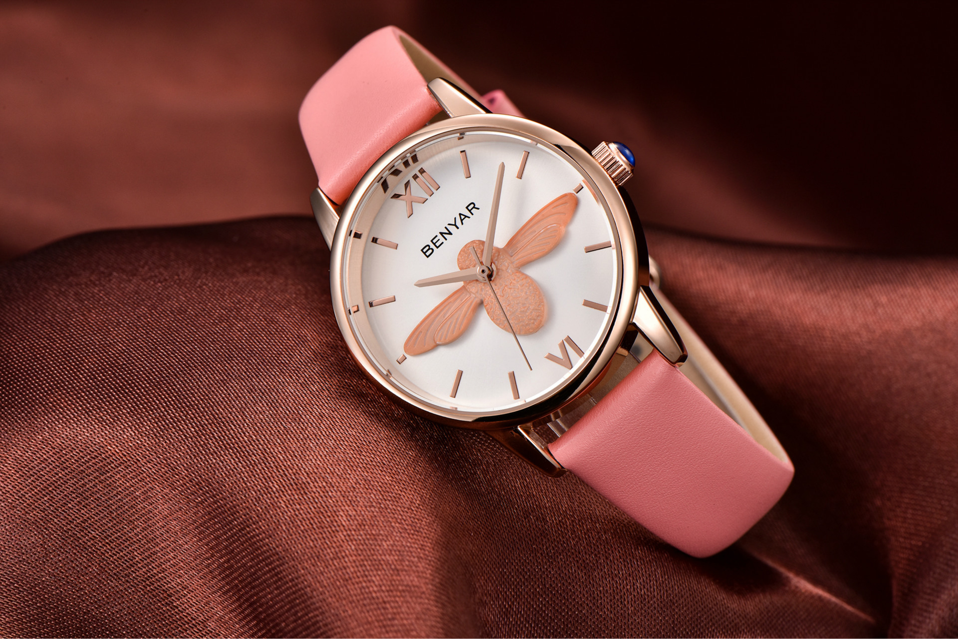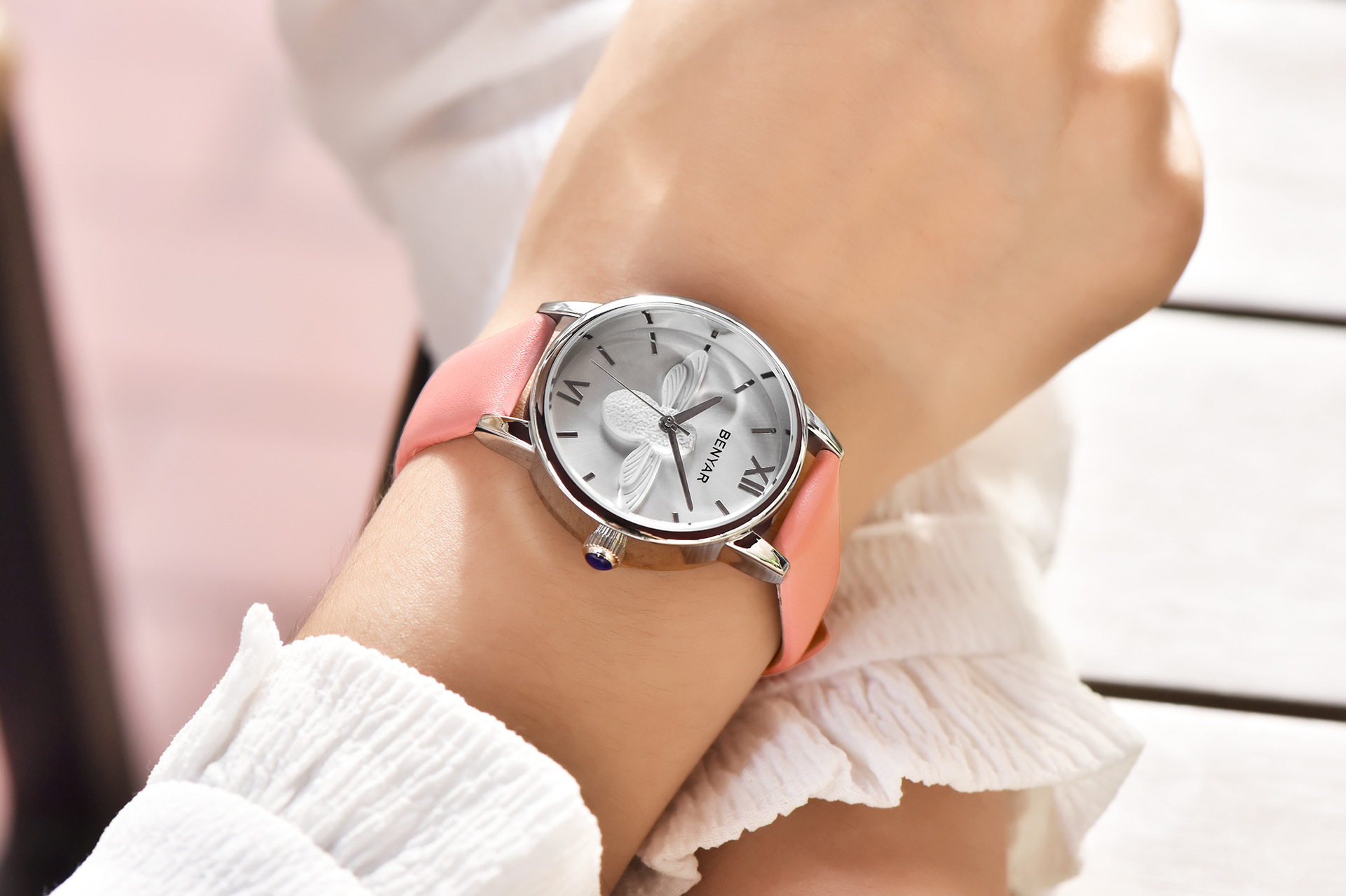 貝母鑲鑽女士手表皮帶石英表女wat123