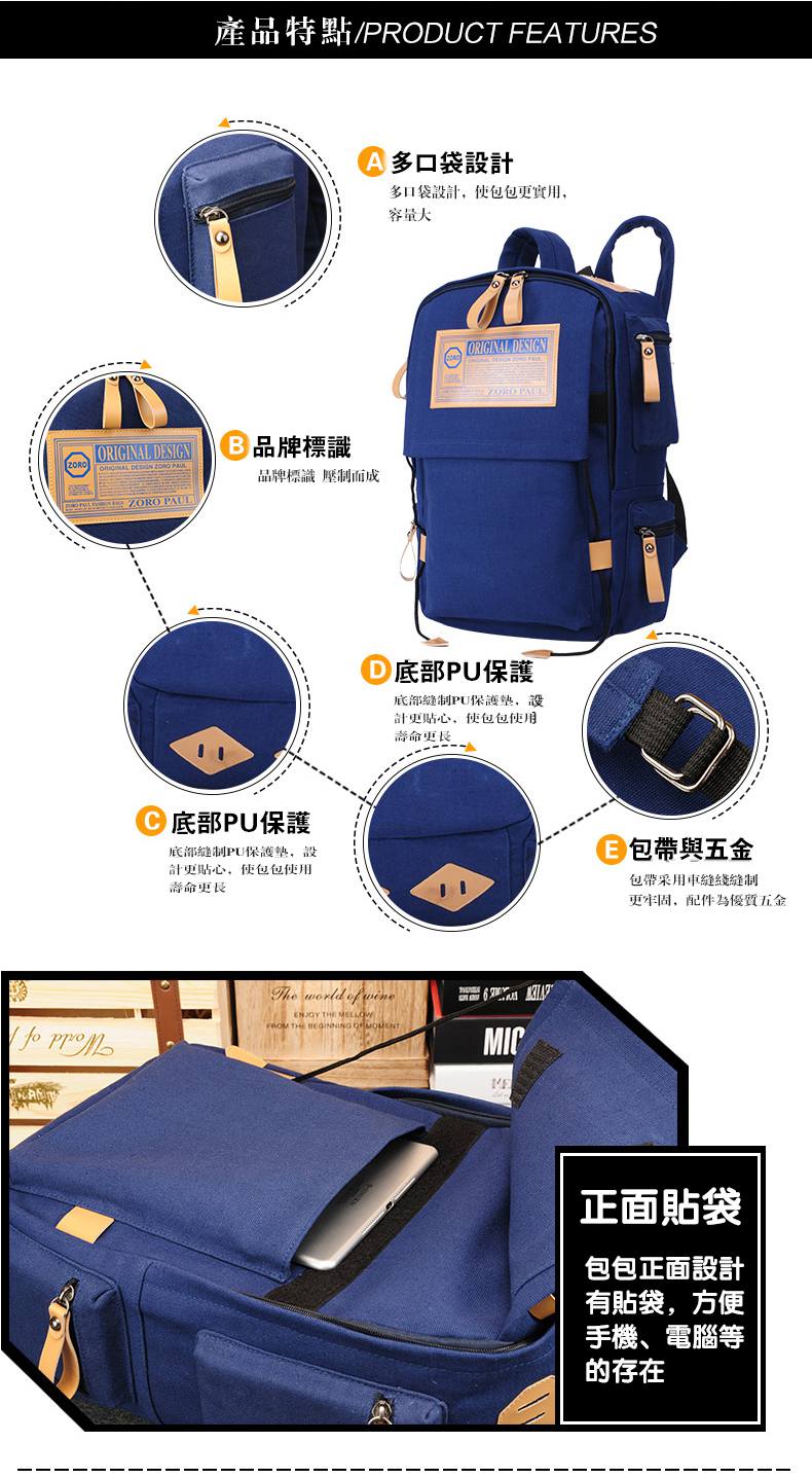 卓倫保羅雙肩包男士韓版背包旅行包Bag28