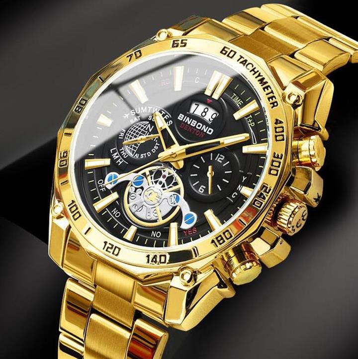 潮流夜光陀飛輪三眼六針手表Wat2066