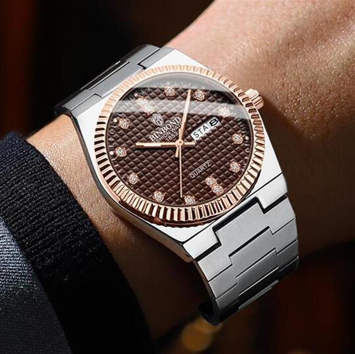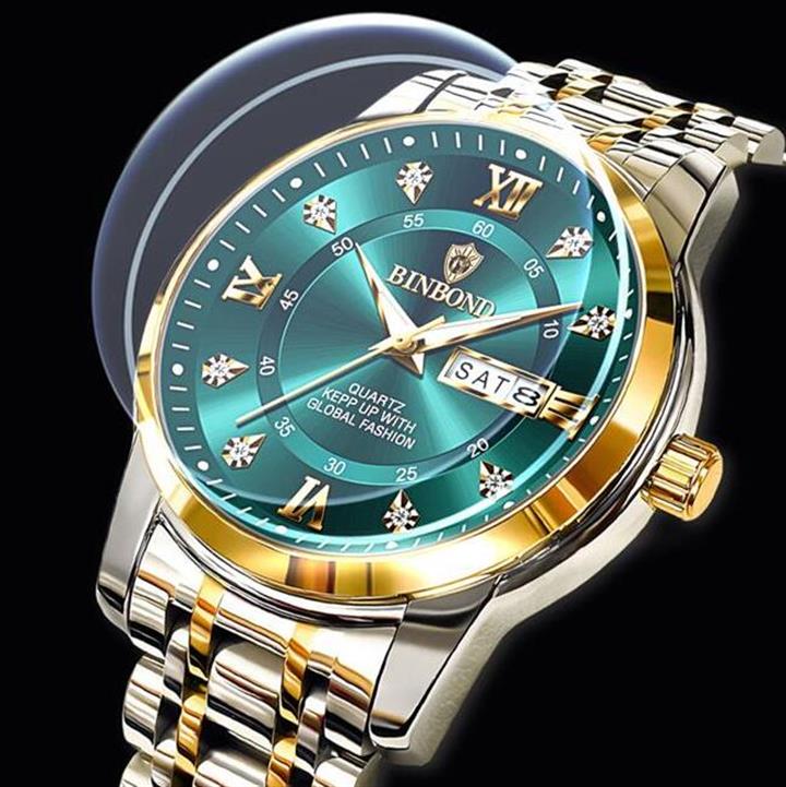 防水夜光雙日歷鑲鉆蝴蝶扣男表Wat2071