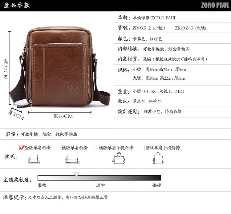 皮霸男士胸包Piba13