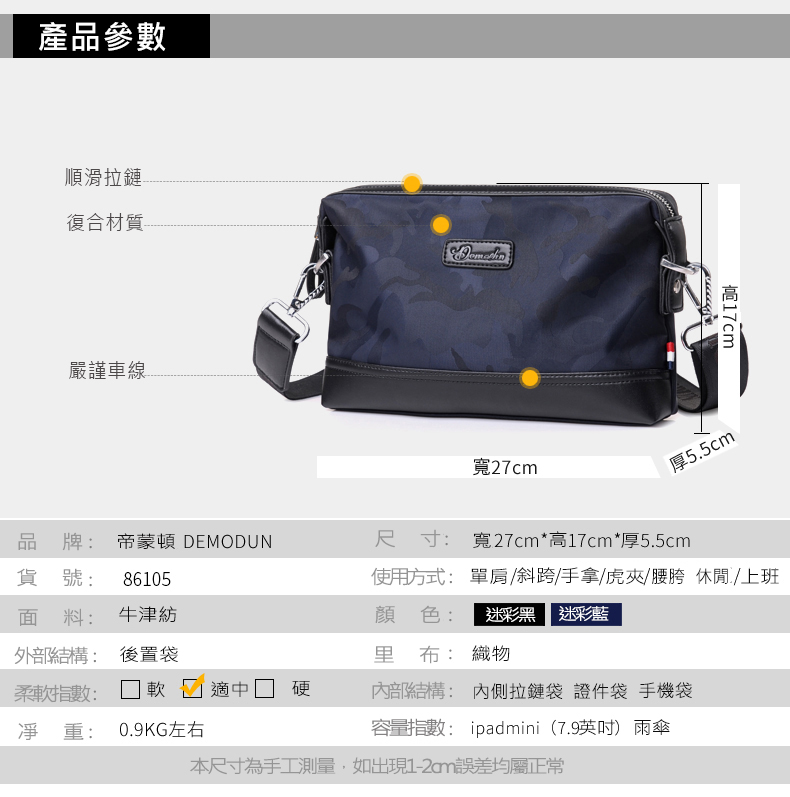 帝蒙頓時尚男包單肩包 男士包包休閒包尼龍帆布包 簡約斜挎包背包Bag89