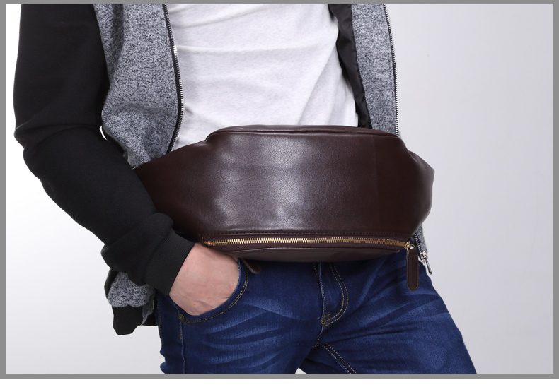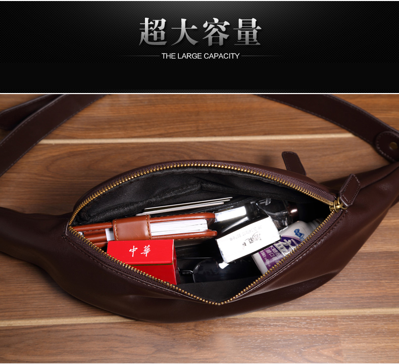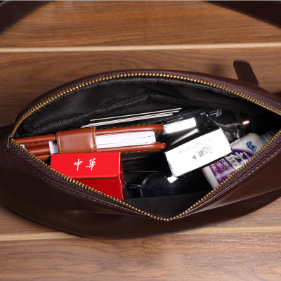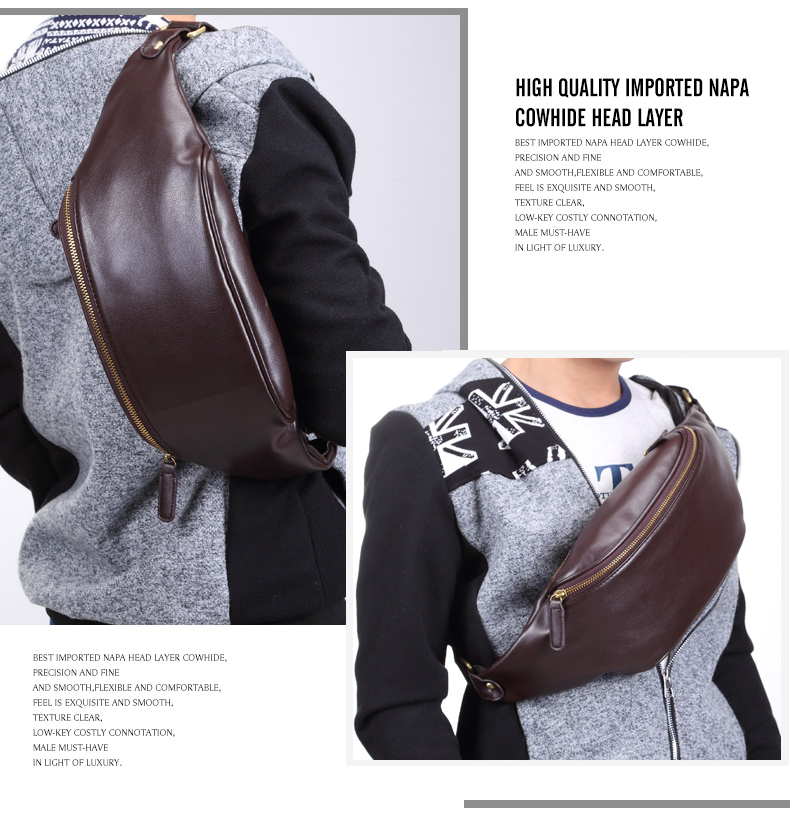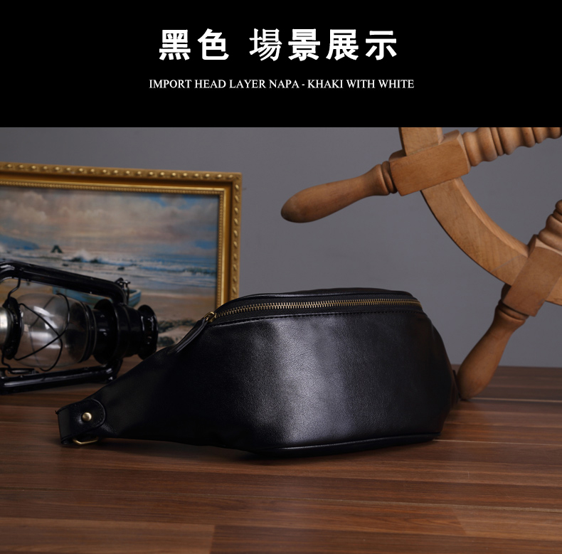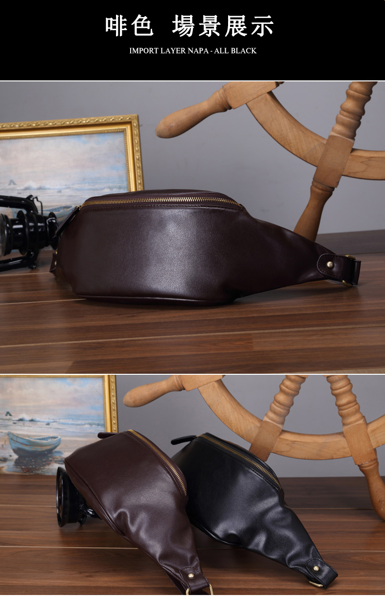 真皮頭層牛皮復古男士腰包斜肩側背單肩兩用包Bag67
