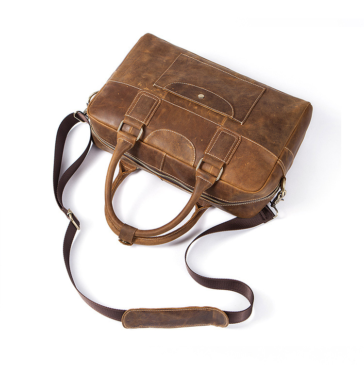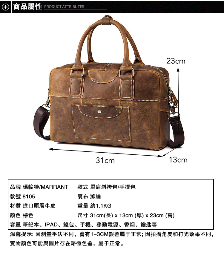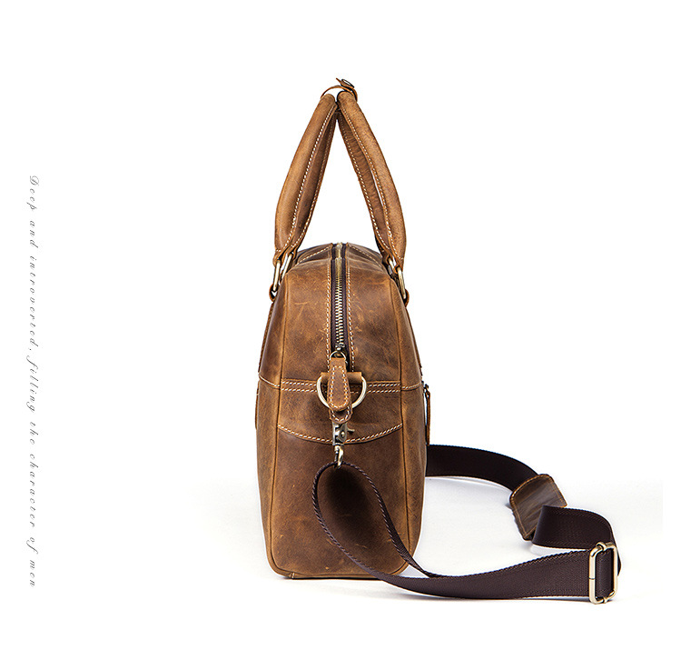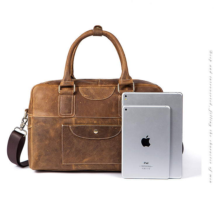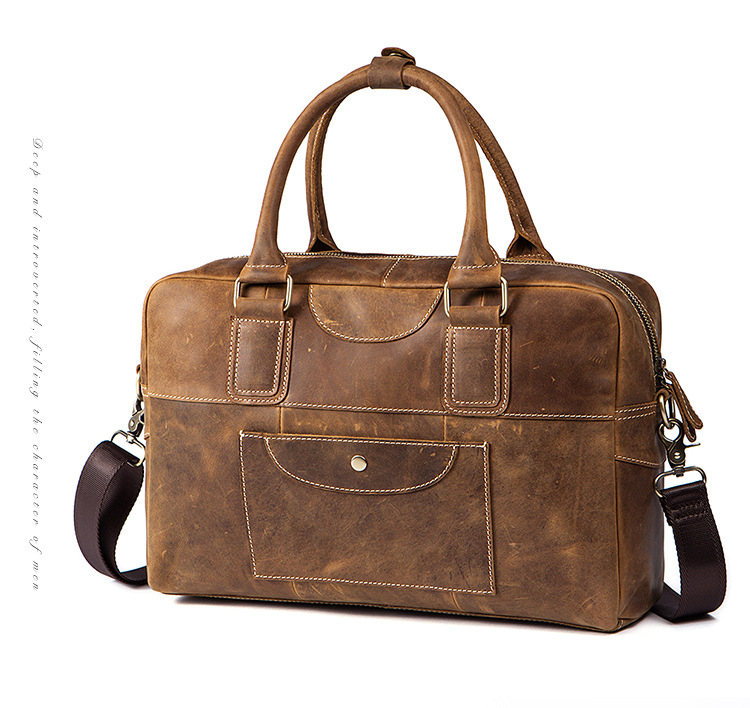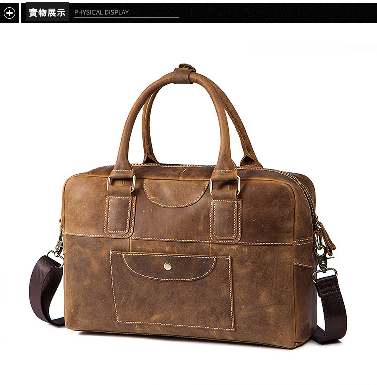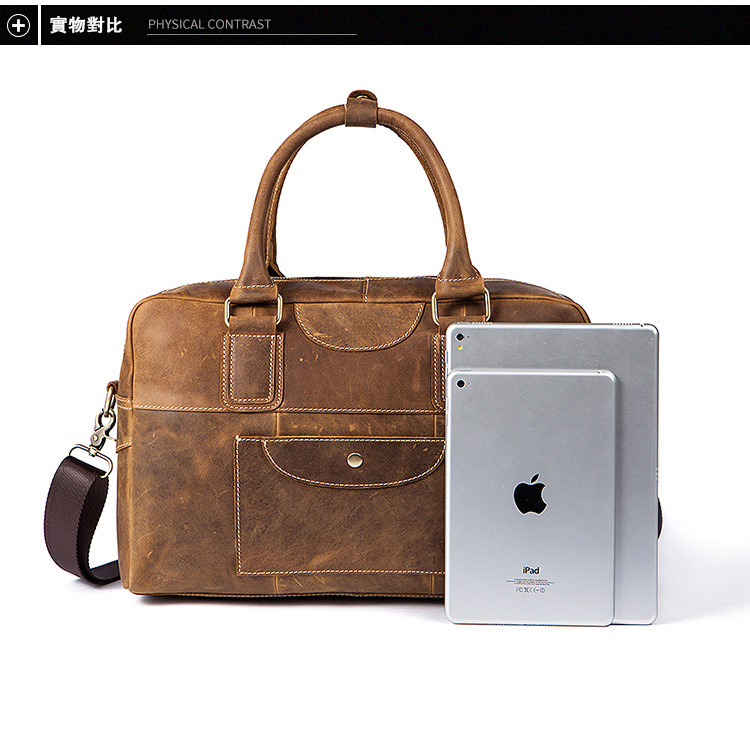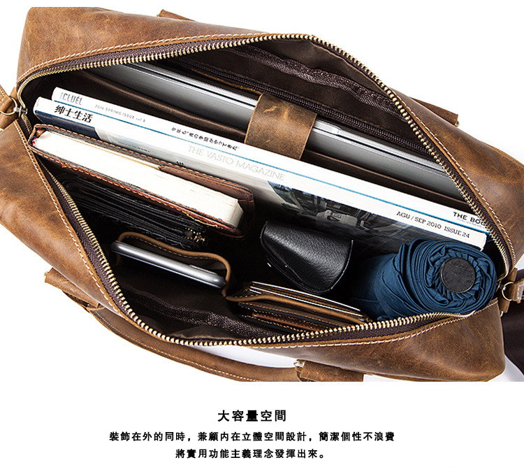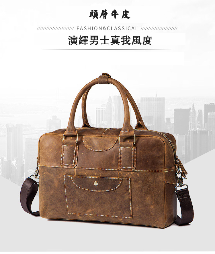 真皮牛皮可裝14吋筆電商務男士多隔層手提包Bag68
