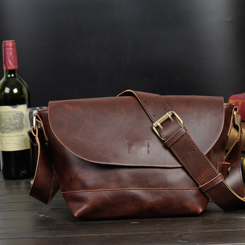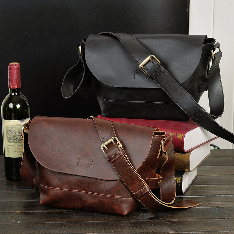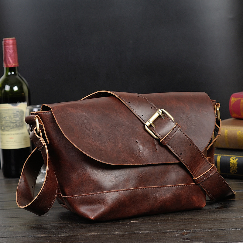 時尚商務男包單肩包男士斜挎包包休閒精品斜跨背包豎款皮包bag70