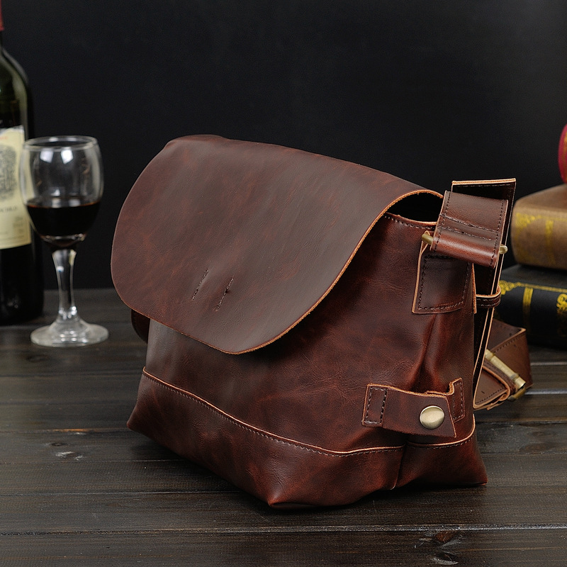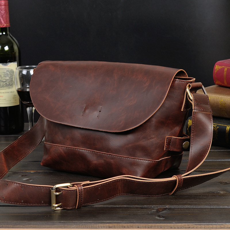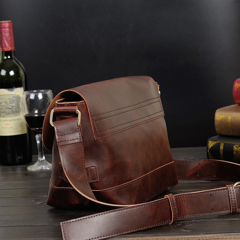 男士休閒豎款斜跨背包頭層牛皮男包bag75