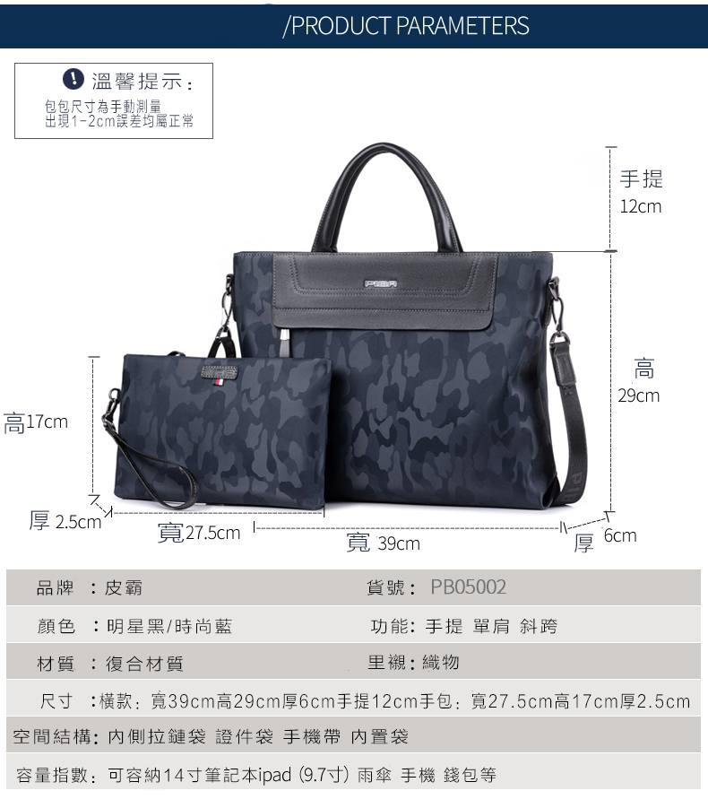 皮霸手提包橫款迷彩男士斜挎電腦包Piba09