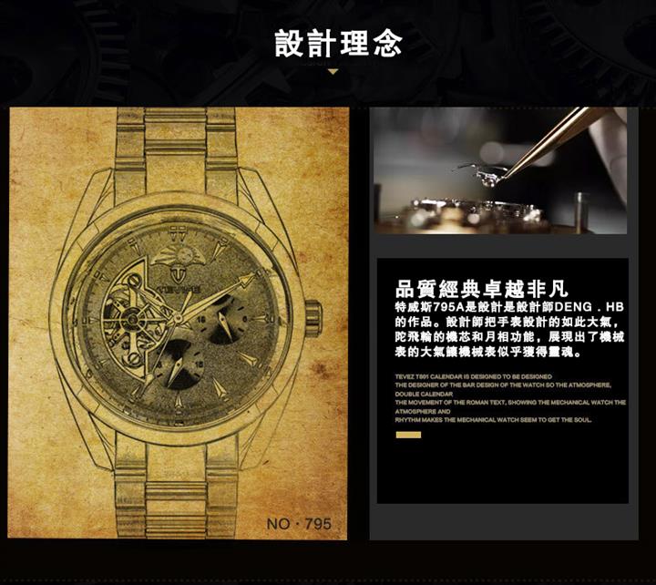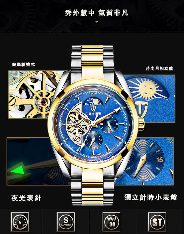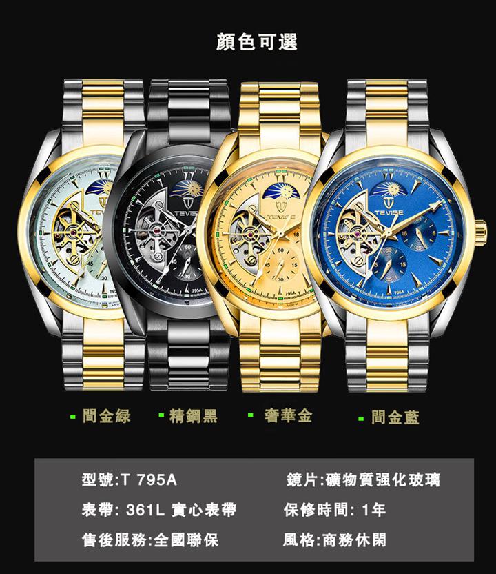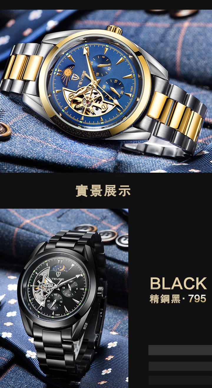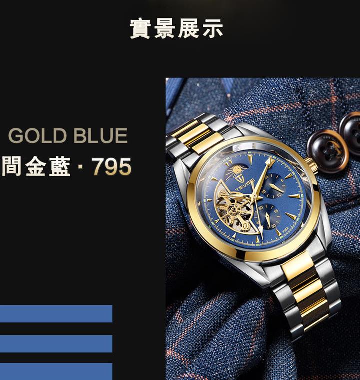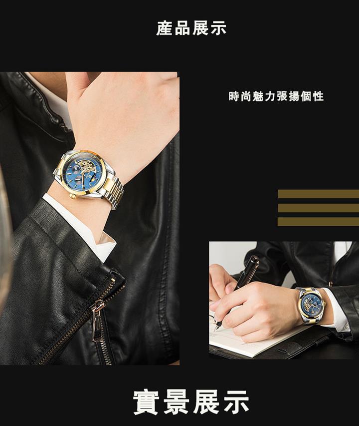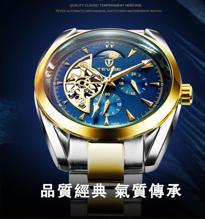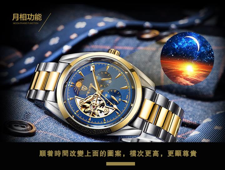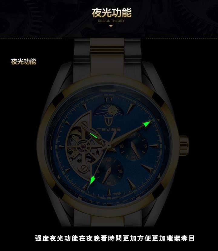 鏤空夜光六針三眼全自動機械錶Wat2095