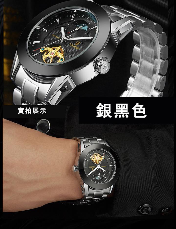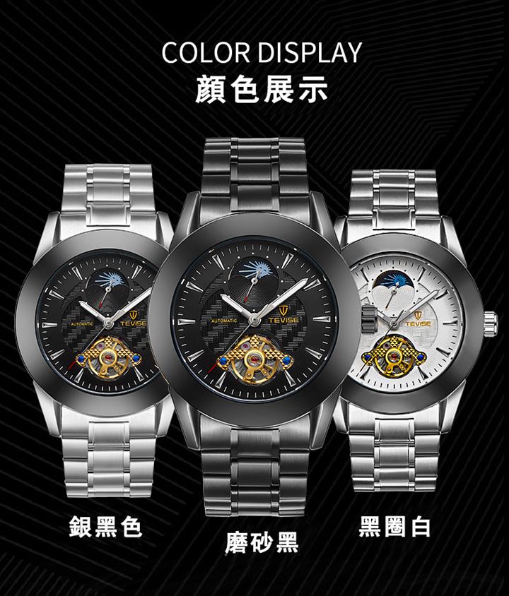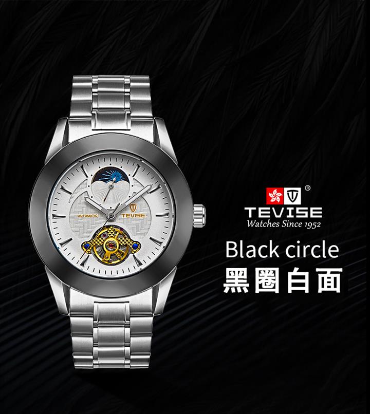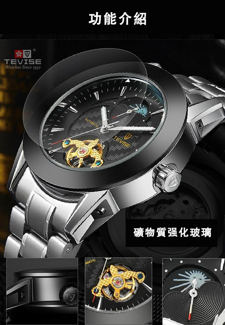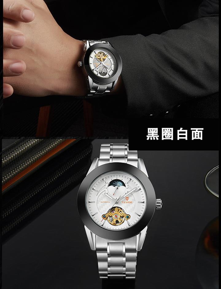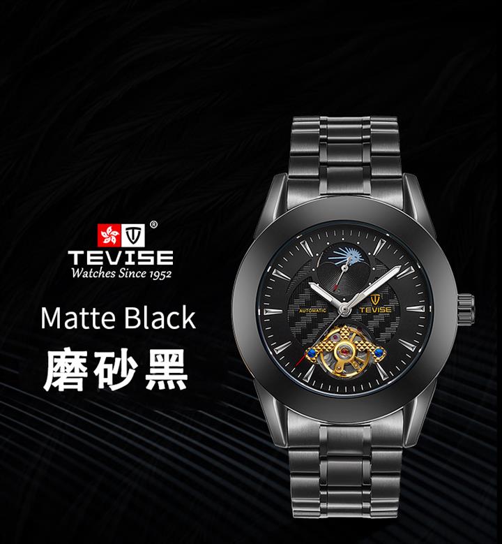 TEVISE全自動機械表鏤空精鋼商務男錶Wat04