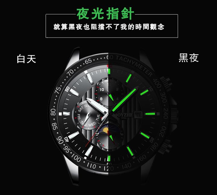 三眼計時真皮夜光手錶Wat2270