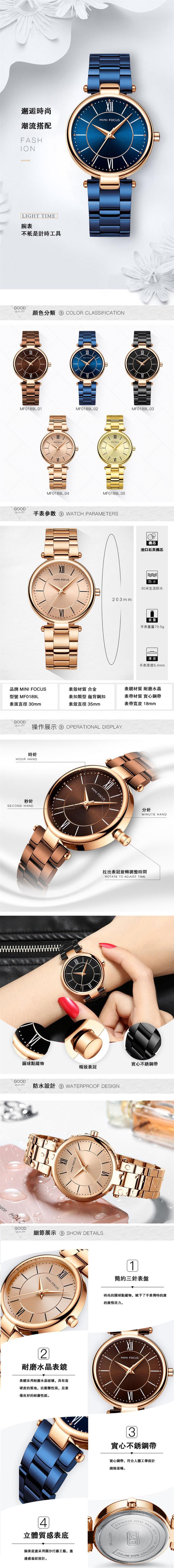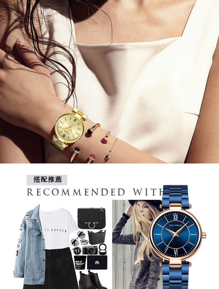 個性鑲鑽石英休閒時尚鋼帶女錶wat121