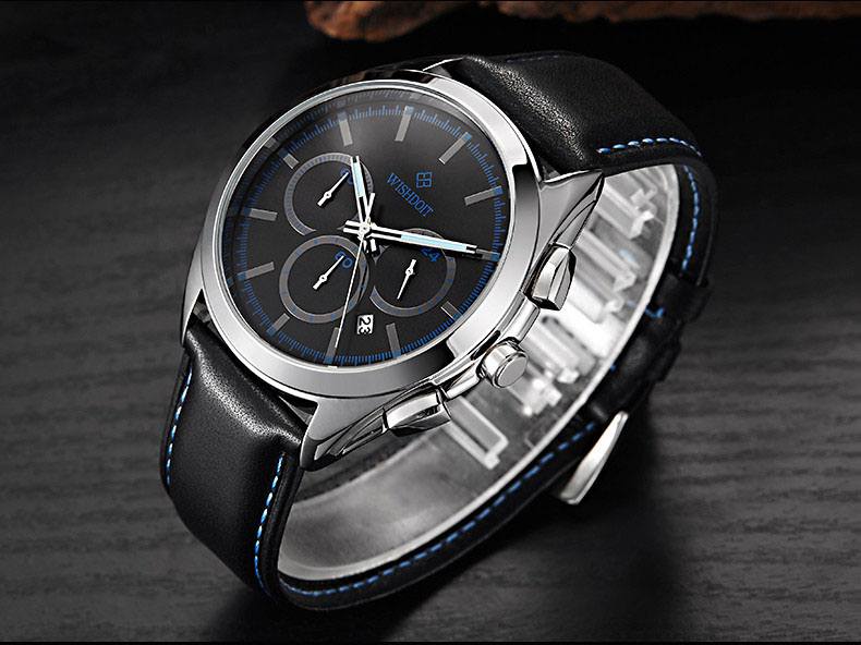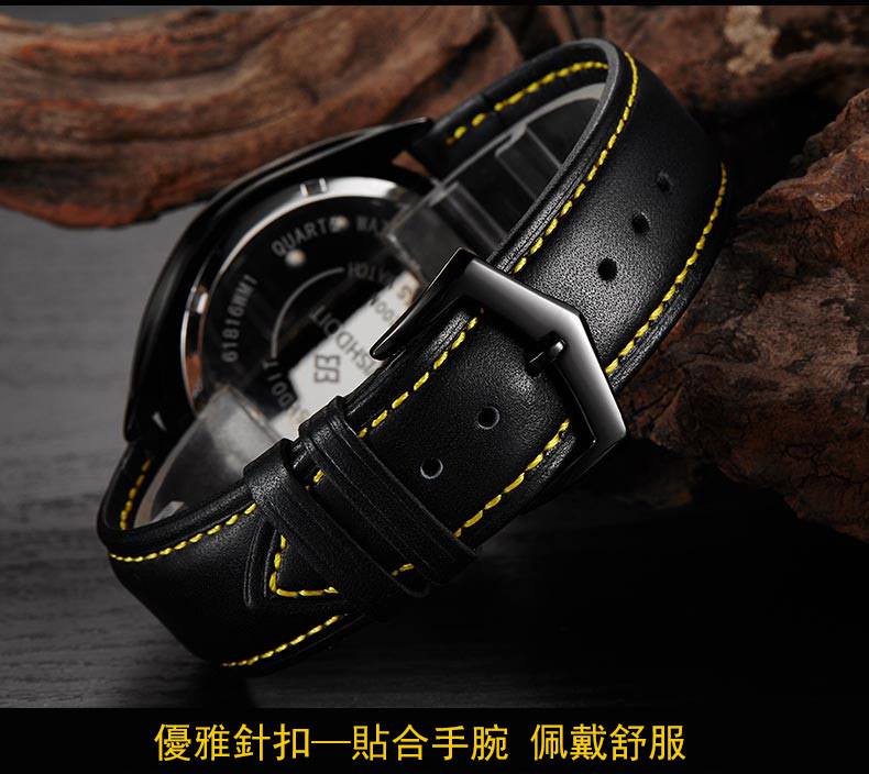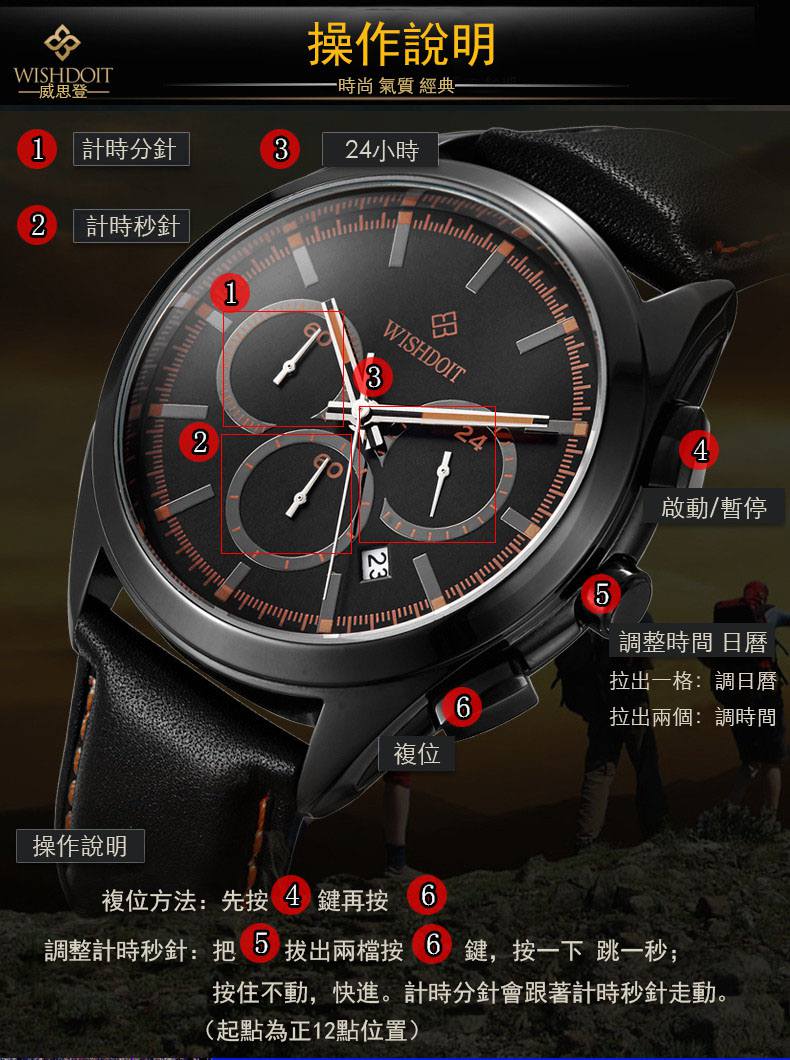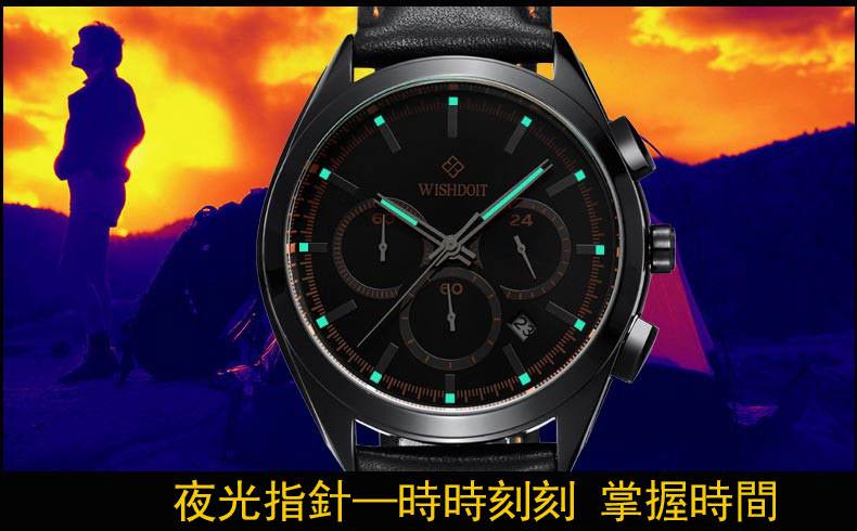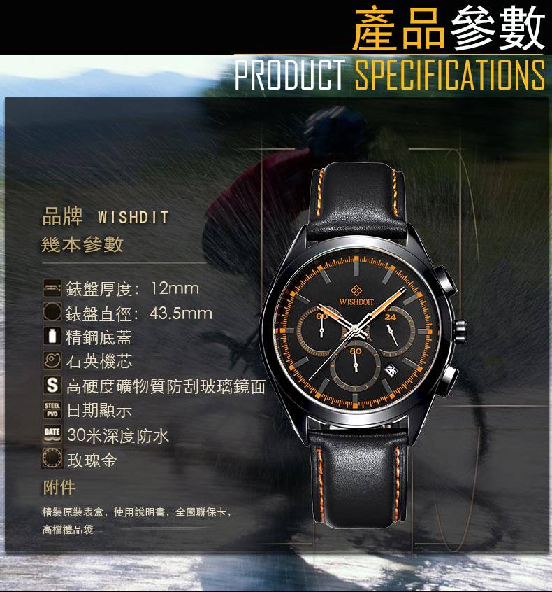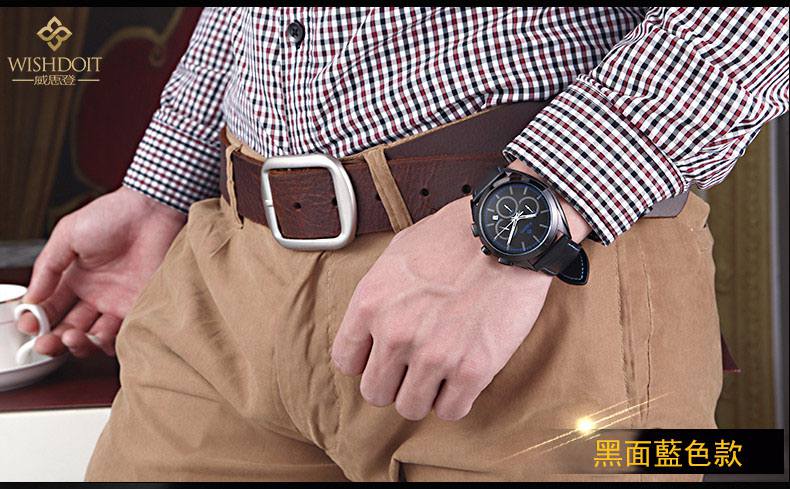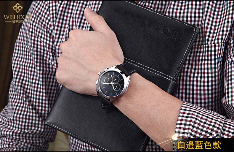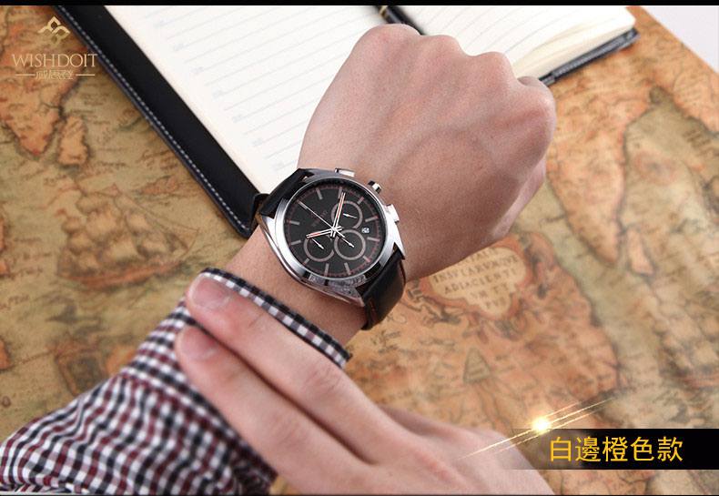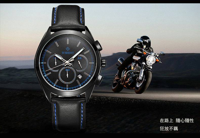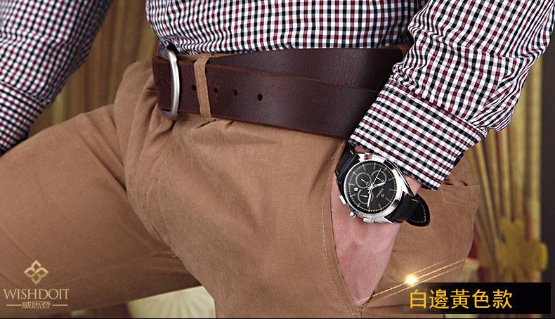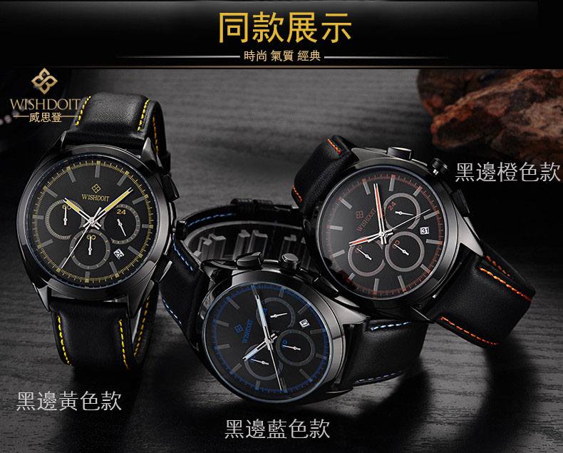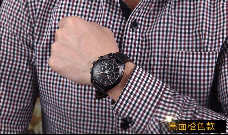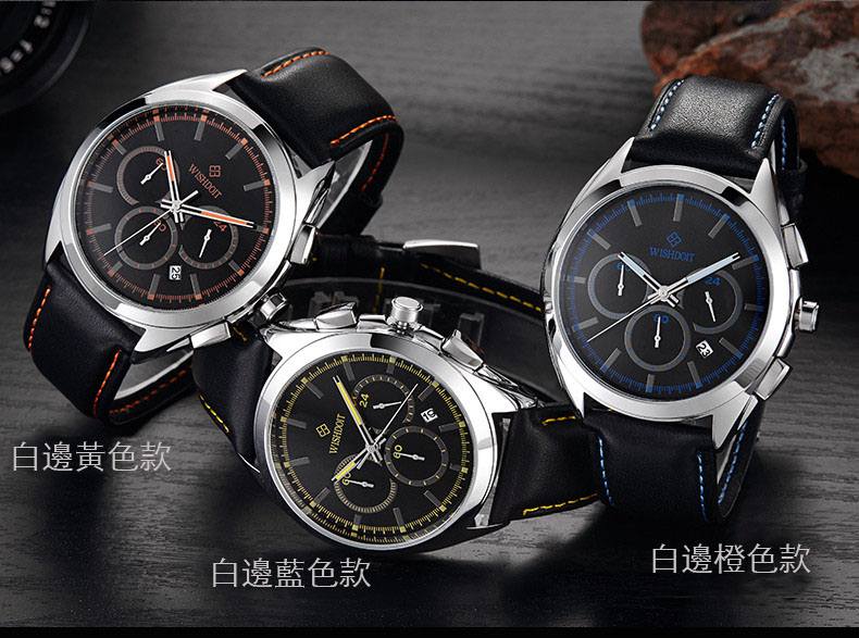 石英日曆腕表真皮男士六針運動防水錶Wat29
