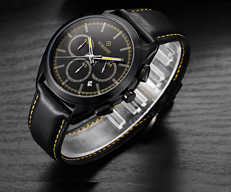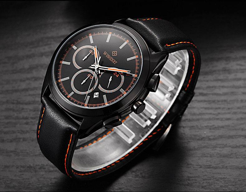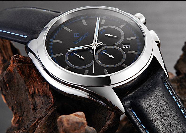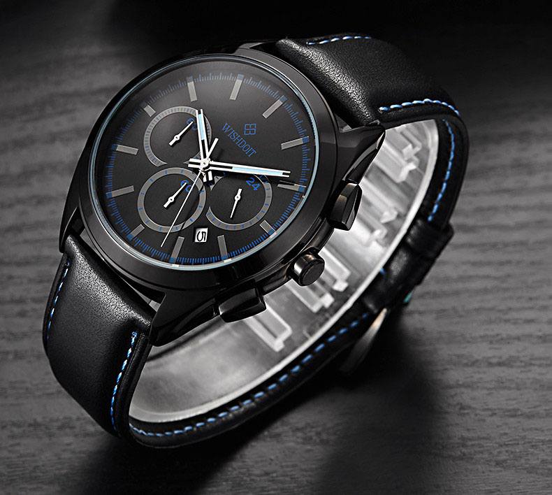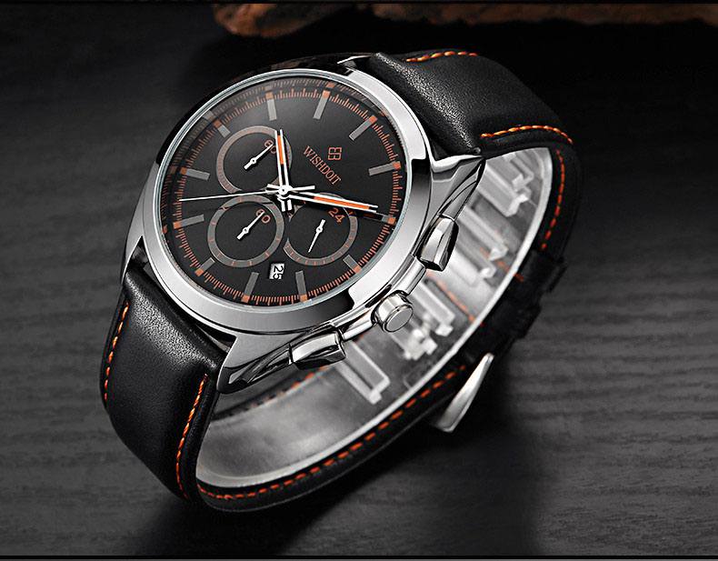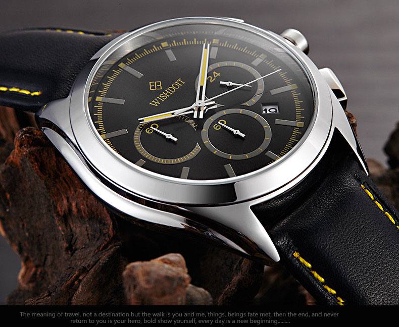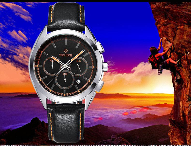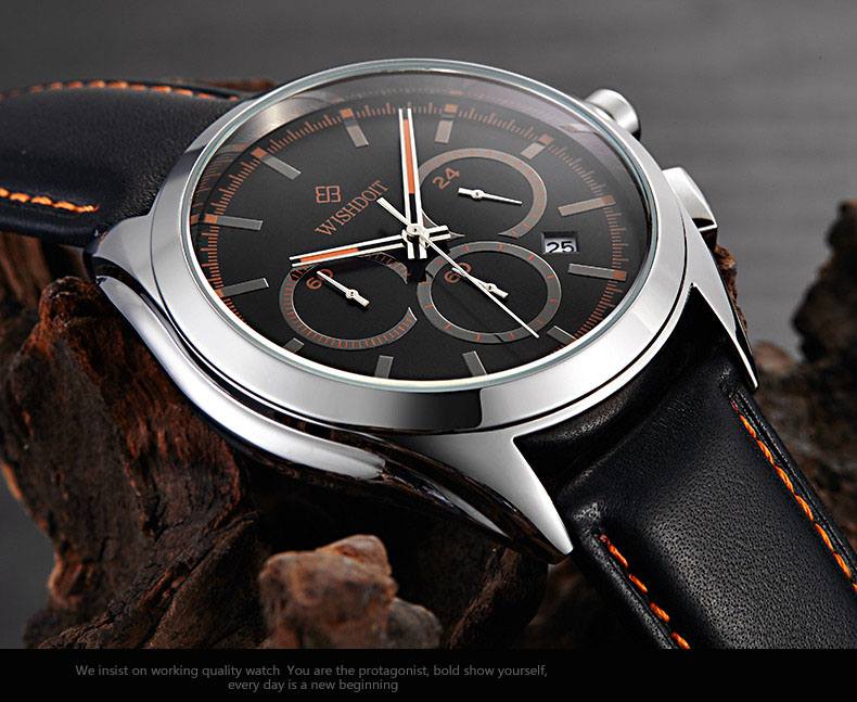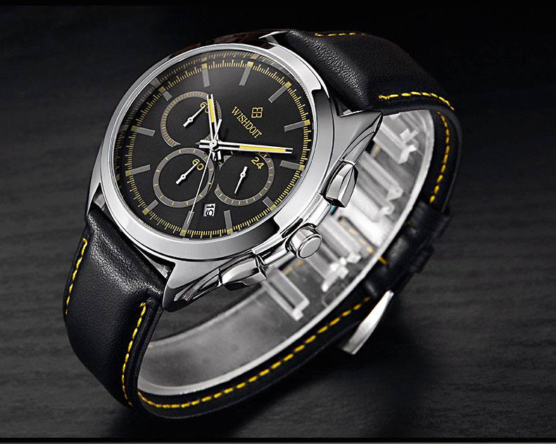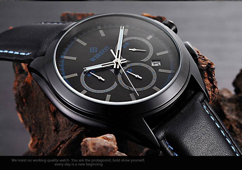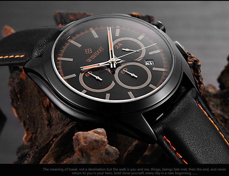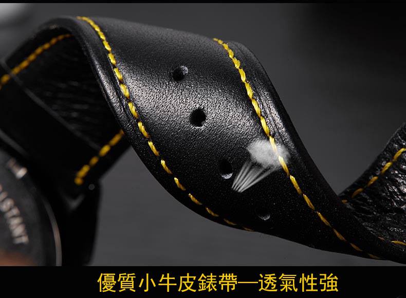 石英日曆腕表真皮男士六針運動防水錶Wat29