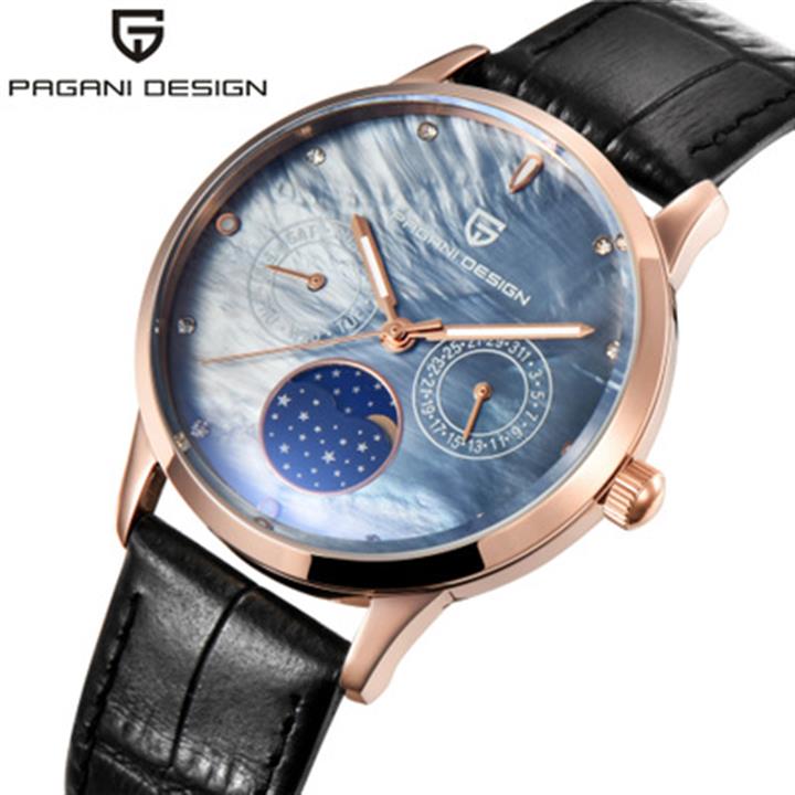 優雅時尚貝殼面真皮錶帶實心鋼錶Wat43