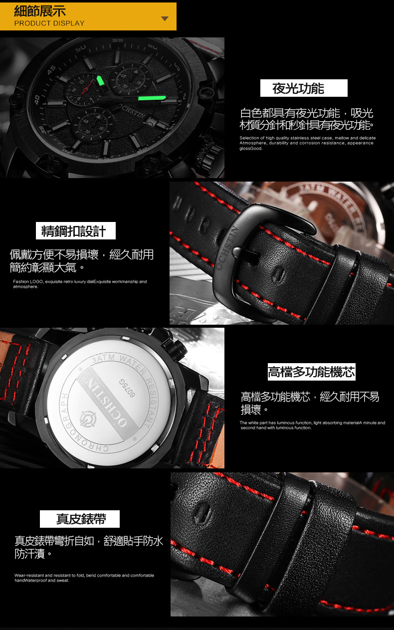 三眼六針多功能防水精鋼錶Wat21