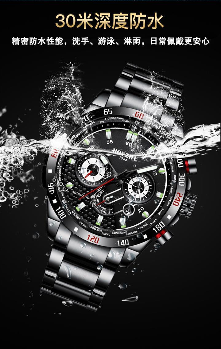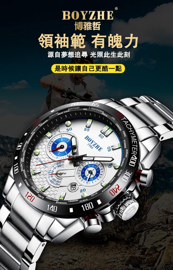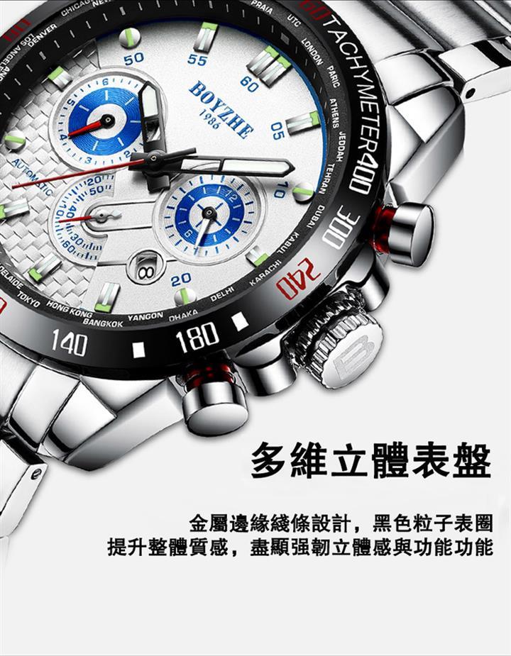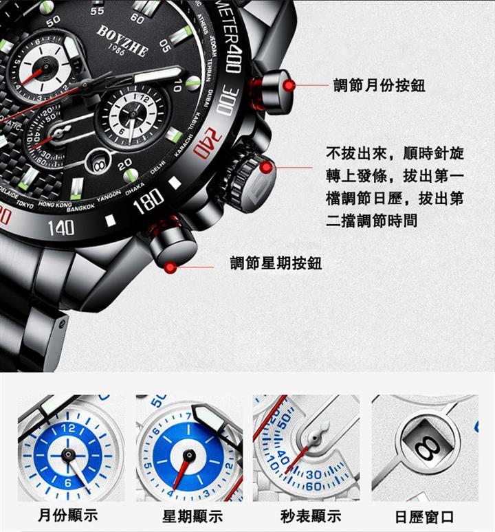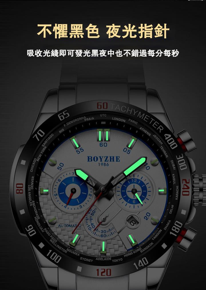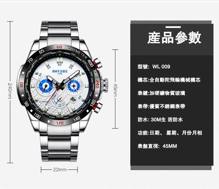 鏤空夜光六針三眼全自動機械錶Wat2095