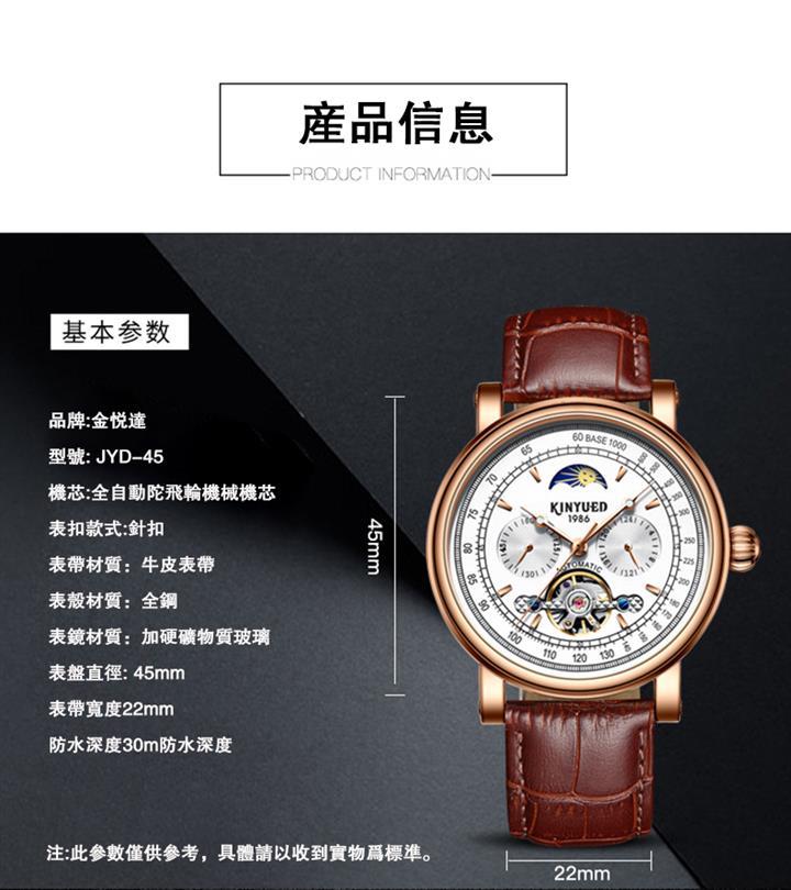 夜光黑水鬼全自動機械防水精鋼表Wat2034