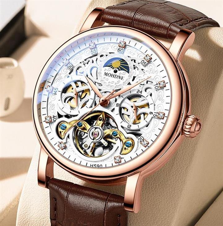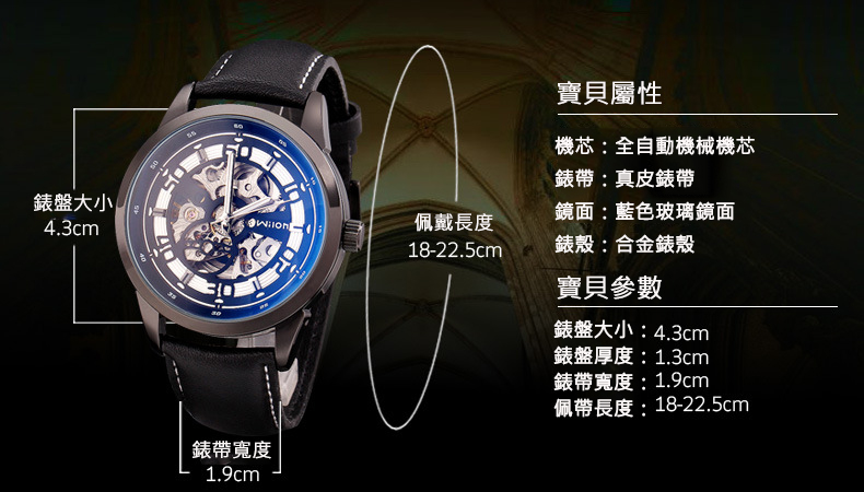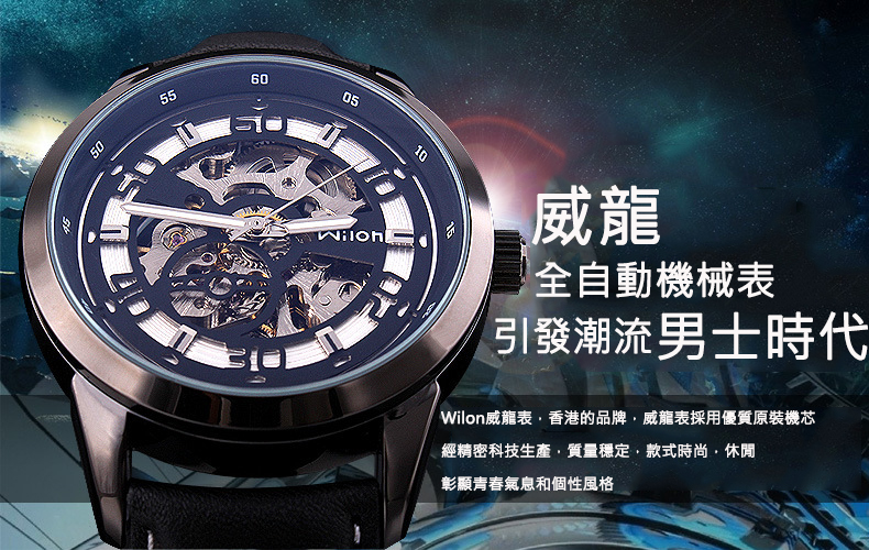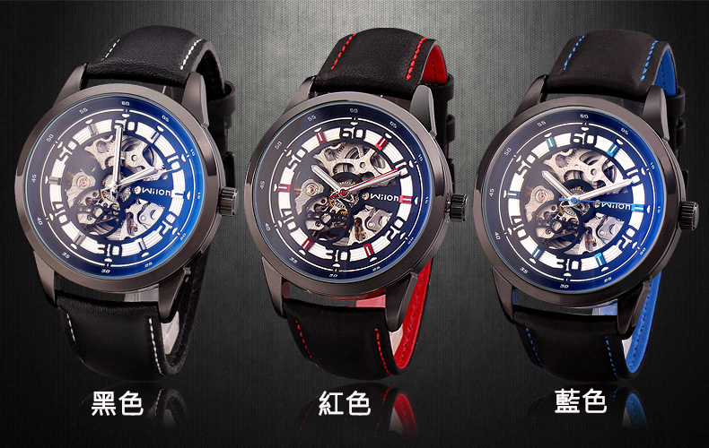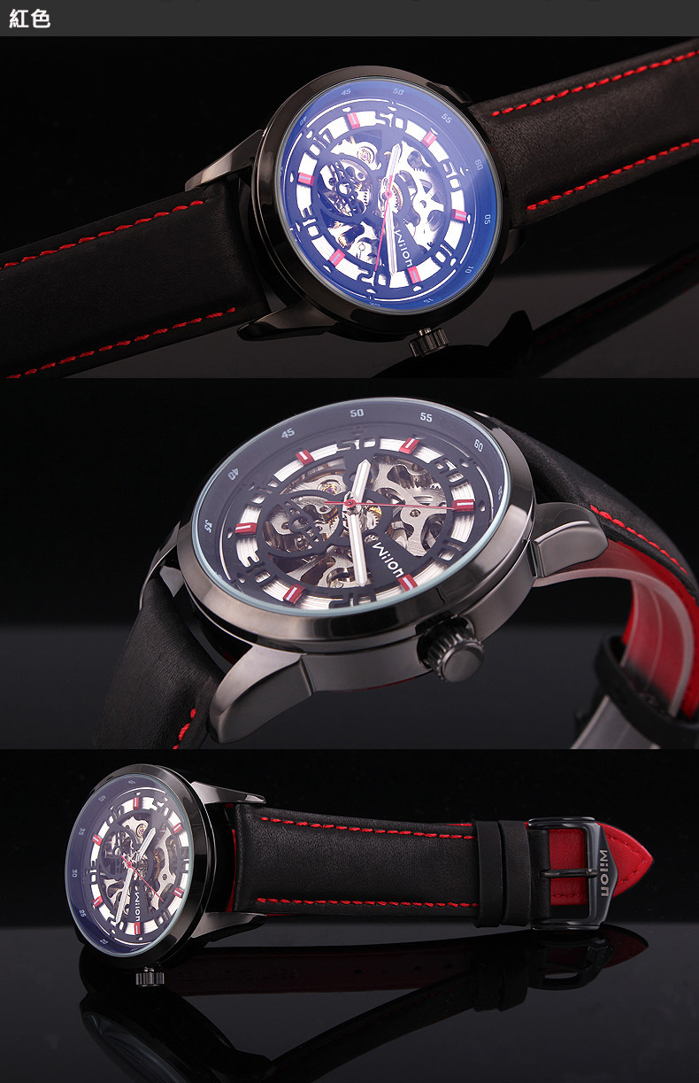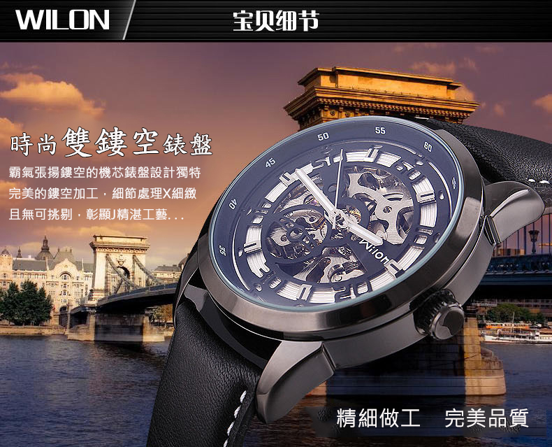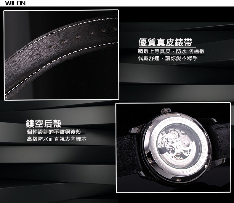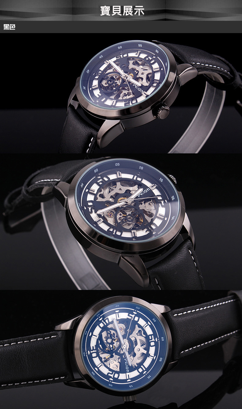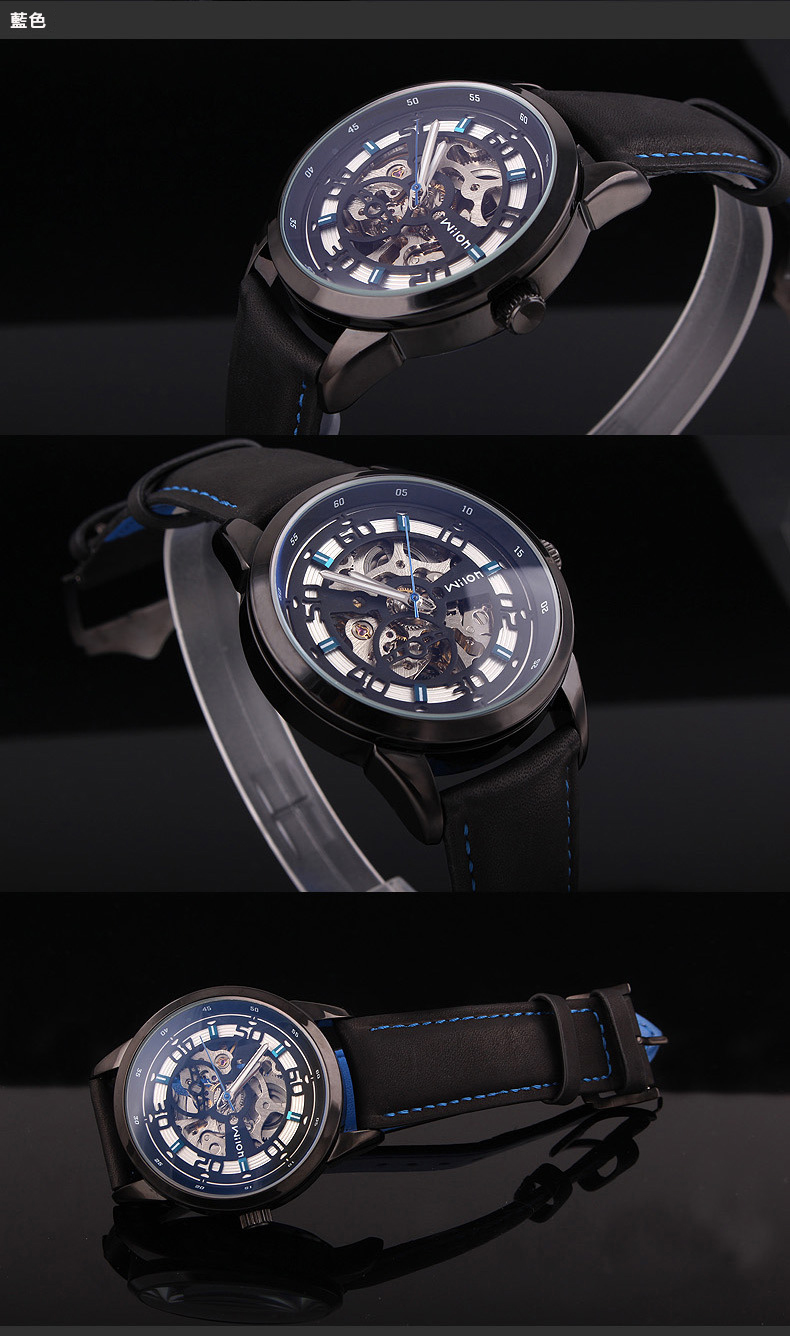 全自動雙鏤空機械表男表真皮鋼帶男錶Wat36