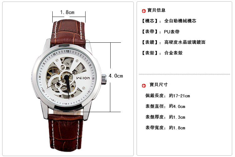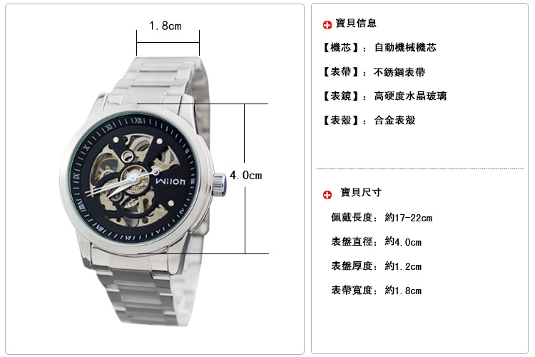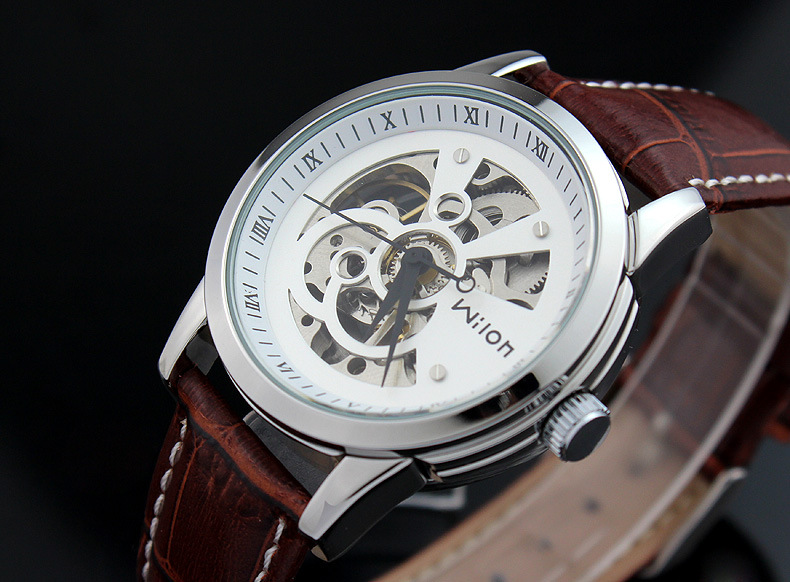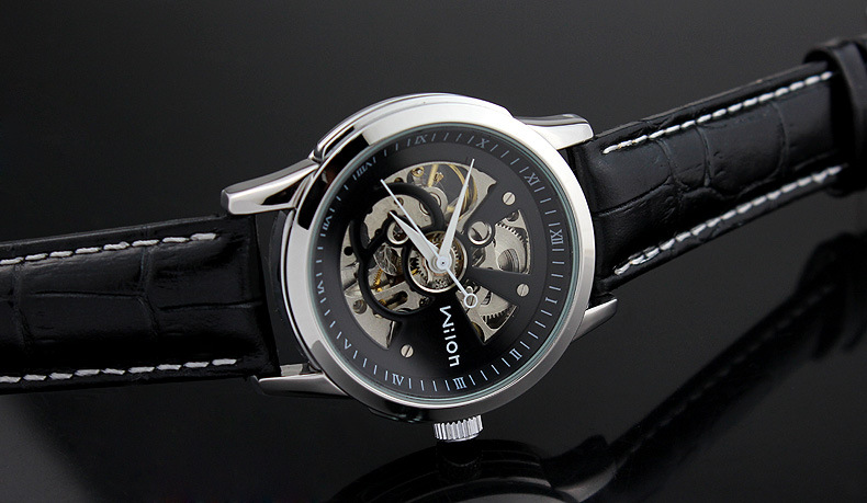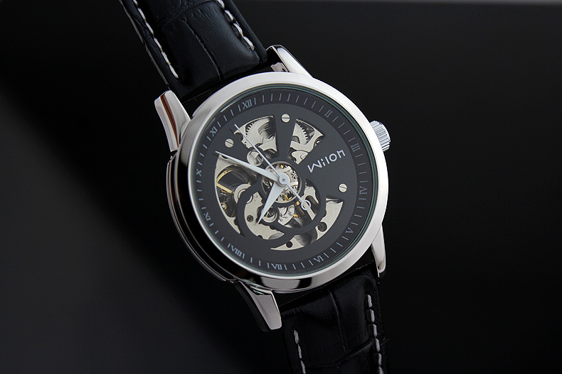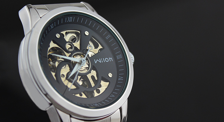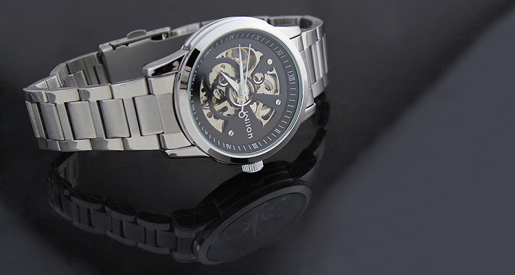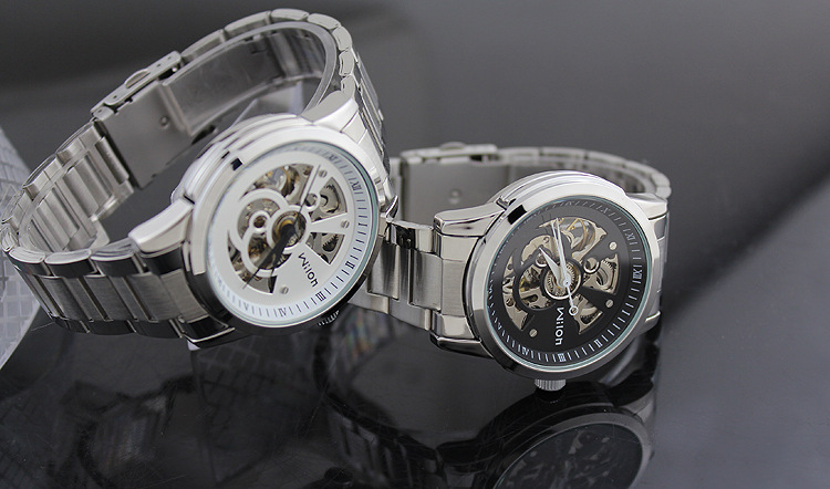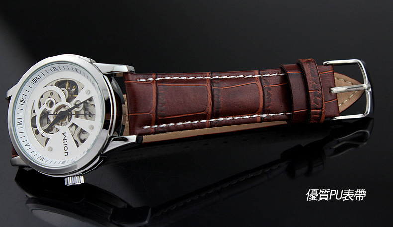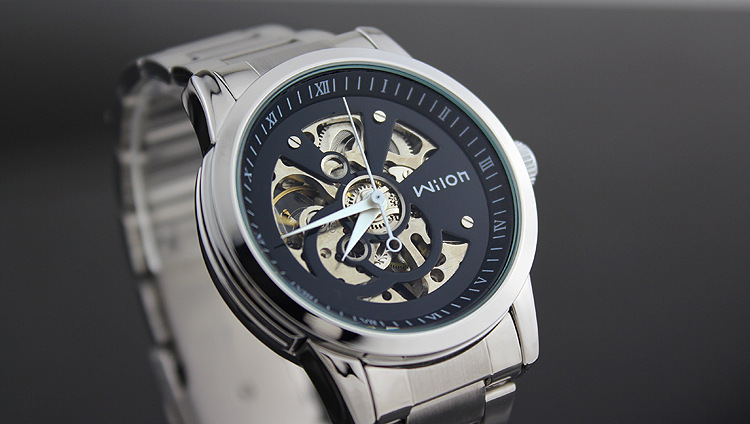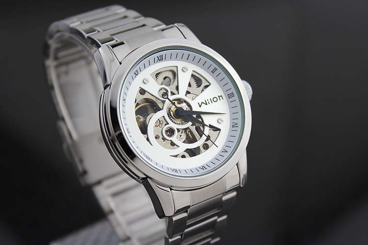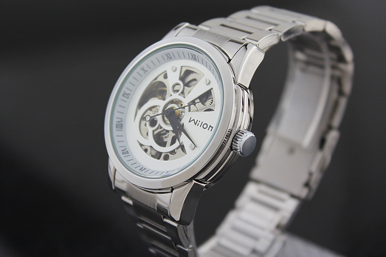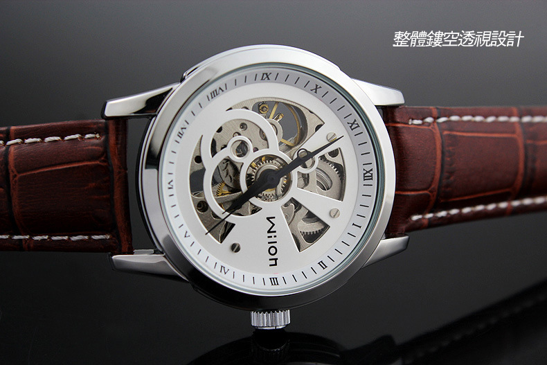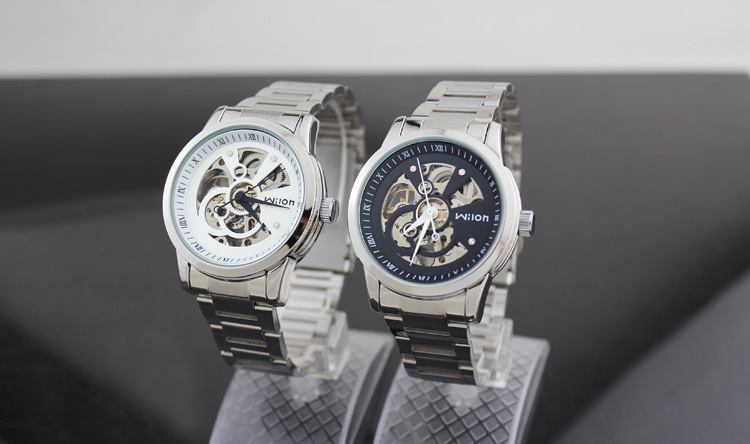 全自動機械鋼帶時尚復古動感鏤空錶盤男錶Wat38