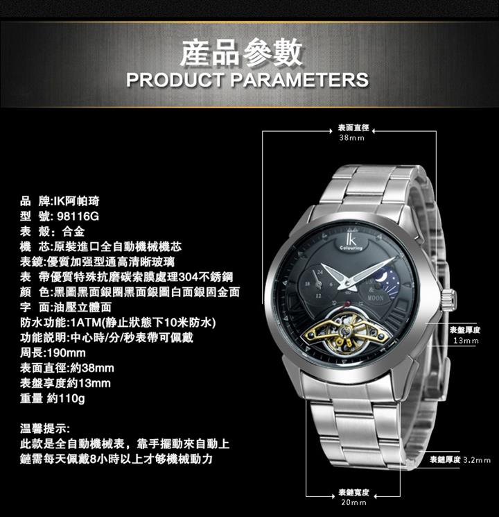 全自動鏤空防水鑲鉆機械男腕表Wat2129