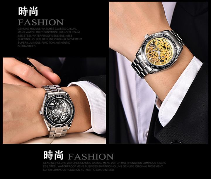 高檔全自動機械鏤空夜光防水表Wat2045