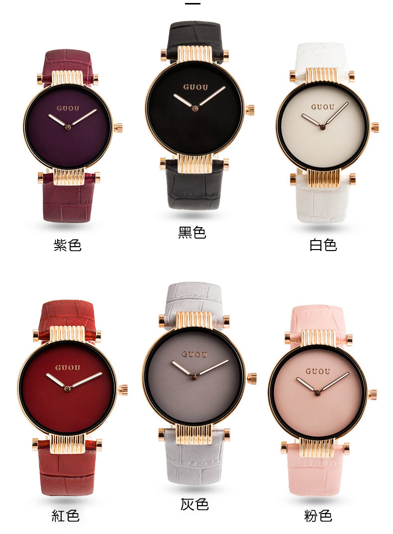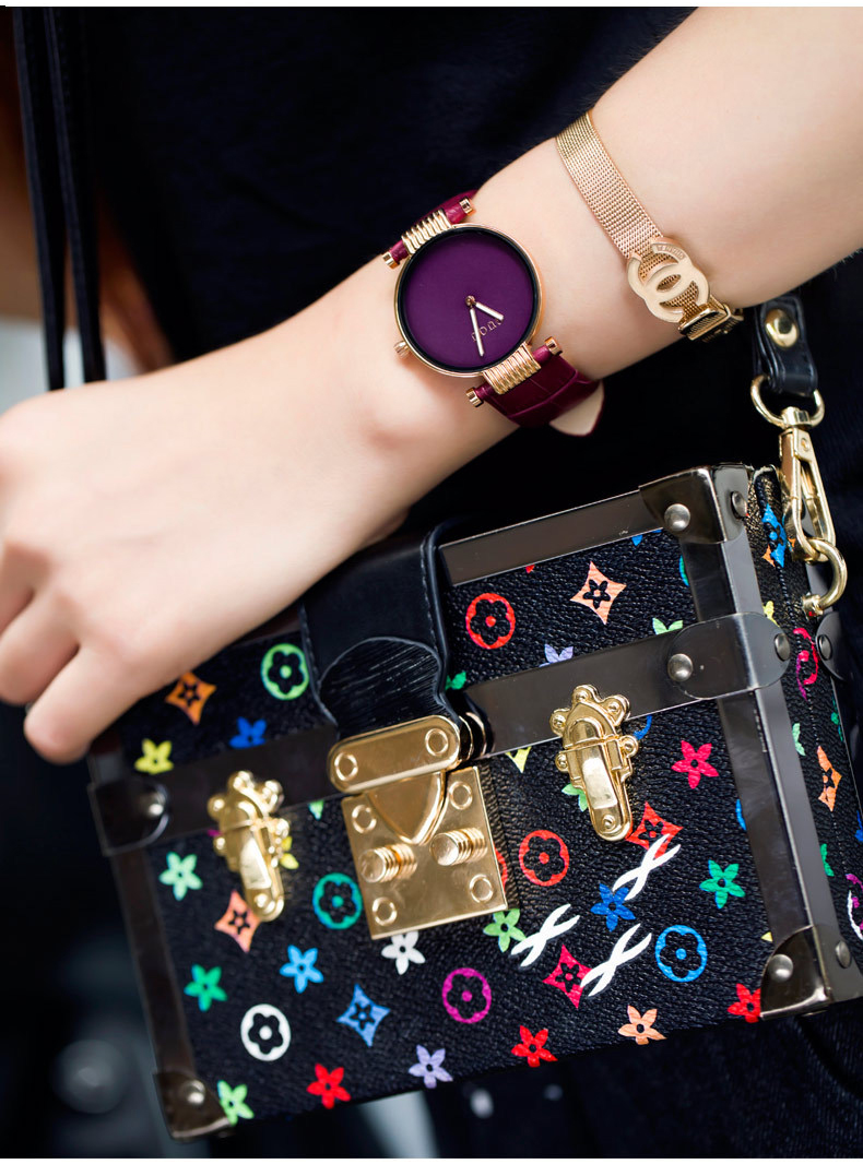 爆款 時來運轉 潮流個性 時尚 紫色皮錶帶 鑲鑽女士手錶Wat55