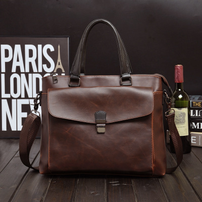 皮霸橫款男士手提包商務公事包休閒復古皮包Piba04