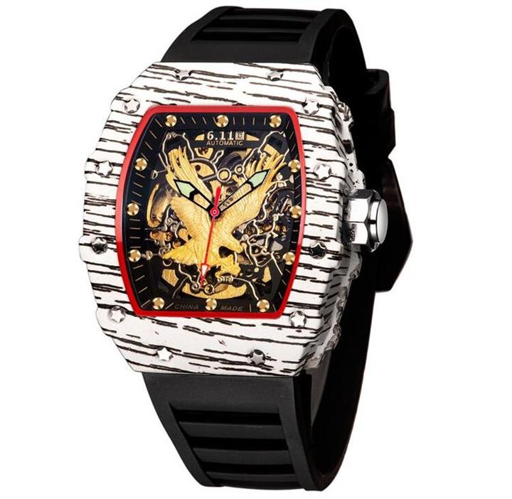 鏤空夜光蟲洞概念酒桶防水機械表wat1950